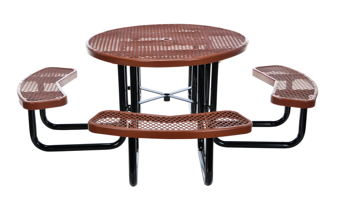 PT-MX-RT-46-BN | ![]() | 90 Days Limited Warranty | Steel Picnic Table Expanded Metal Round Top 46 In. x 46 In. Brown | Gauge of Expanded Steel Tops and Seats: 4-8 Gauge of Black Tube Understructure: 12 & 14 | 245 | ||
