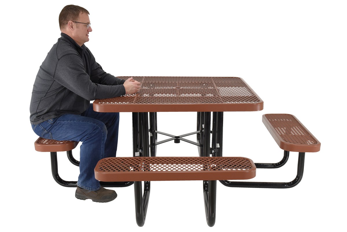 PT-MX-ST-46-BN | ![]() | 90 Days Limited Warranty | Steel Picnic Table Expanded Metal Square Top 46 In. x 46 In. Brown | Gauge of Expanded Steel Tops and Seats: 4-8 Gauge of Black Tube Understructure: 12 & 14 | 245 | ||