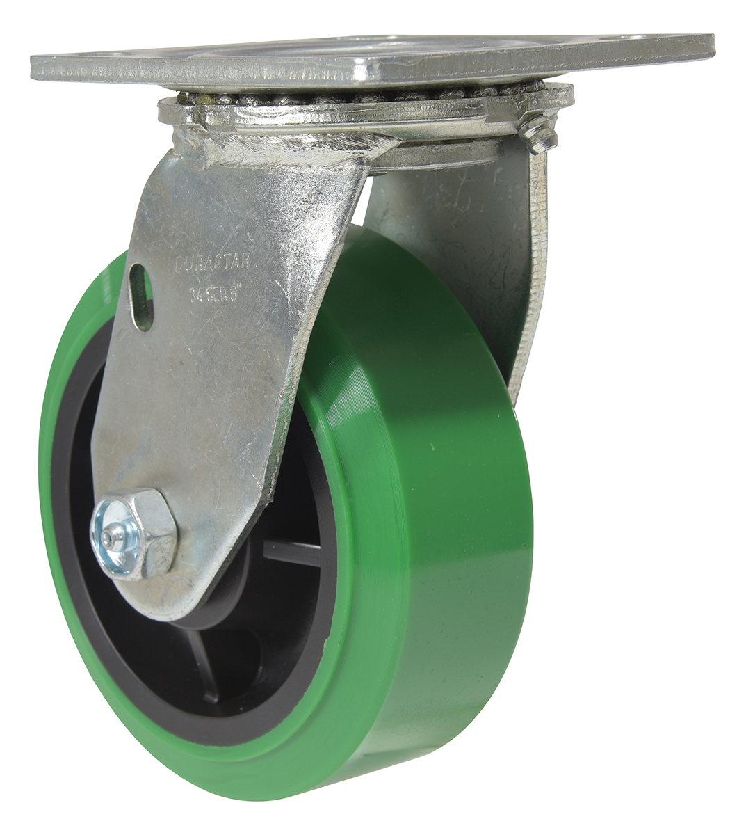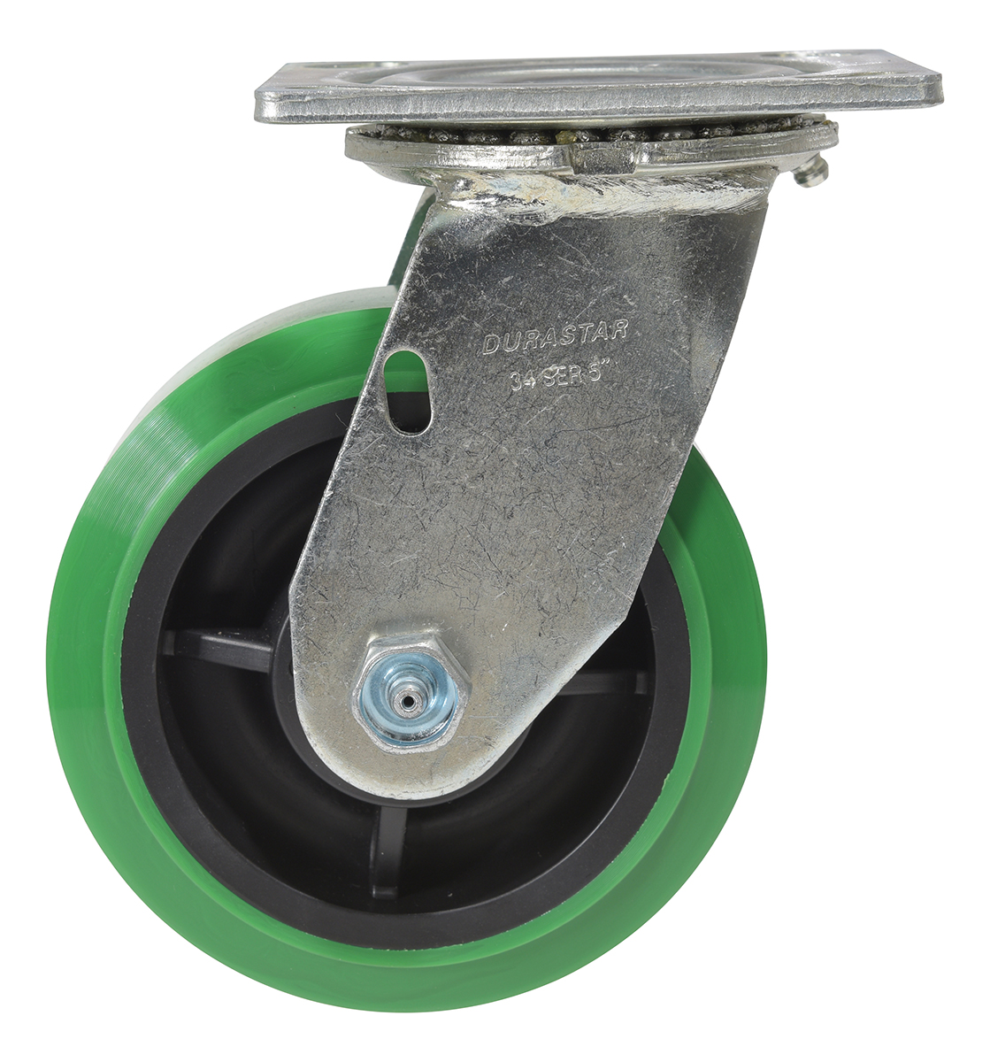 Made with 100% pure polyurethane tread. This caster is a great upgrade for standard polyurethane. Designed using a new liquid cast flow fusion that ensures a 100% mechanical bond to core and "zero" trapped air. It has a high resistance to debris and most chemicals. The proprietary tread provides good floor preservation, and has a longer life performance than standard polyurethanes. Green tread color. 90-95 shore a. Wheel center is constructed of polyolefin.