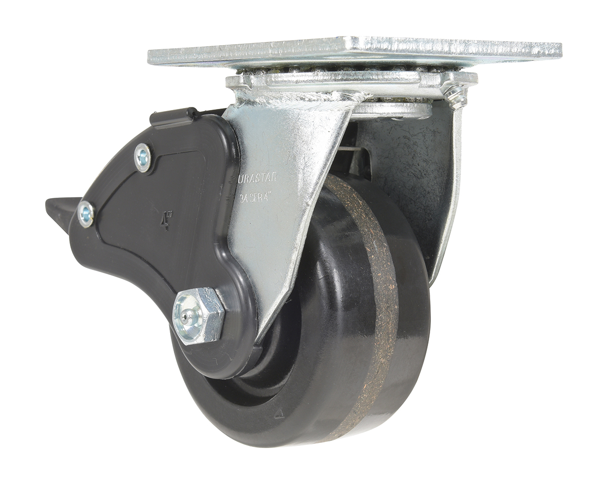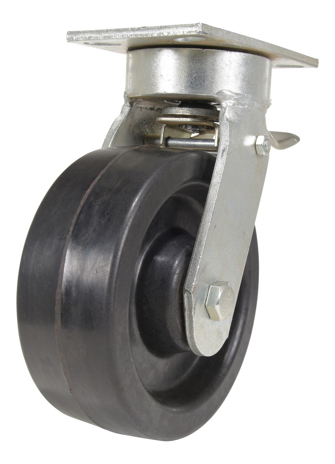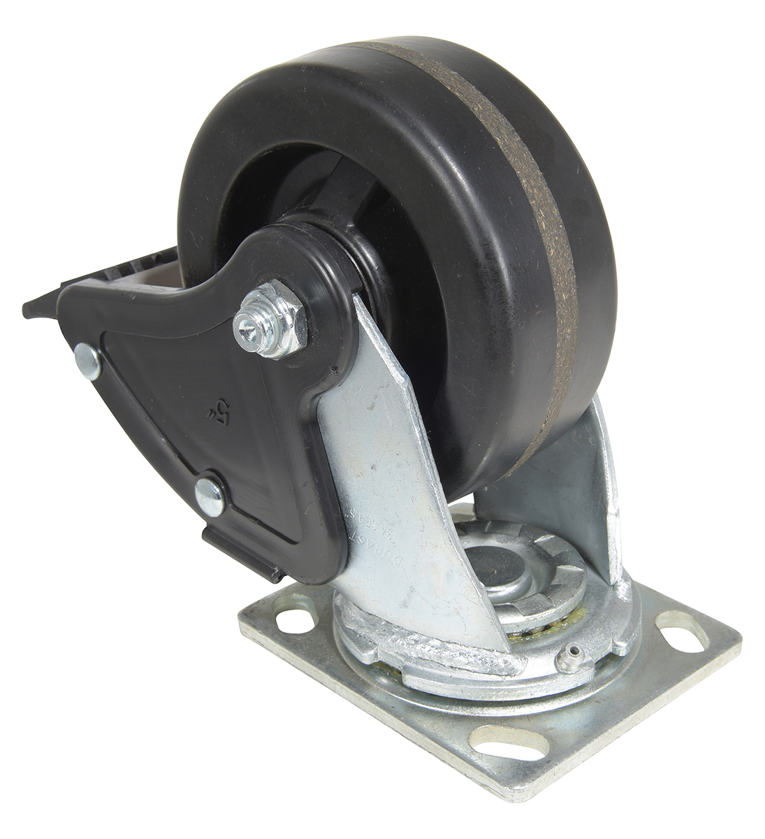 Phenolic wheels have a high resistance to impact damage, while providing protection for floors in commercial and industrial settings. Resistant to water, oil, and grease. It is also spark resistant and operates in a wide temperature range. Black tread color. Wheel core is phenolic. 100 Shore A.