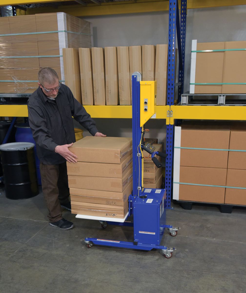 Quick lift units with auto height indexer transport and position loads quickly and efficiently. Featuring a low profile design with dual push handles for maneuvering in narrow aisles and confined spaces. The auto height indexer lets the platform be unadjusted to the most suitable height. When unloading many boxes, as one box is taken off of the platform, the height of the platform automatically re-adjusts back to the set proper height. This minimizes bending and keeps the user in a more ergonomic position throughout the process.