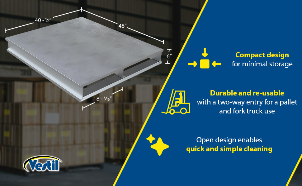 | Aluminum Solid Top with Skid Bottom 47-7/8 In. x 42 In. x 5-1/16 In. 6000 Lb. Capacity Silver | Entry: Skid Bottom Fork Opening Widths (in.): 19-9/16, 15-5/8 | 115 |