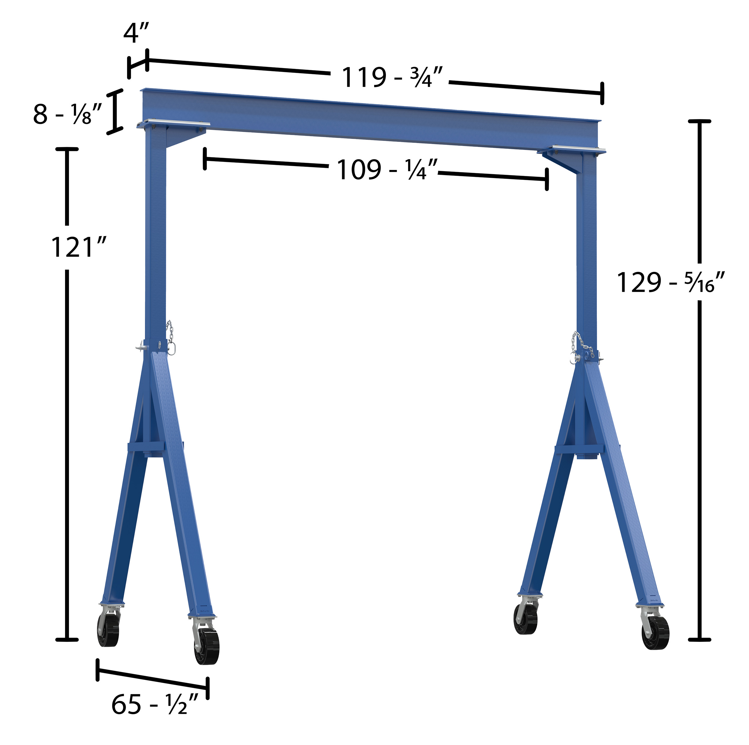 | Steel Fixed Gantry Crane with Phenolic Casters 10 Ft. 4000 Lb. Capacity Blue | Uniform Capacity (lb.): 4,000 Overall I-Beam Length (ft.): 10 | 625 |