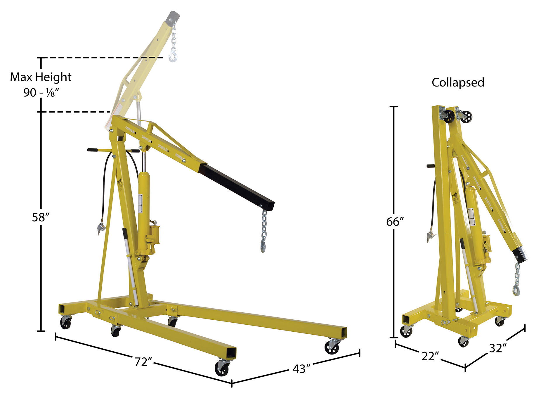 | EHN-40-C-AH | ![]() | 90 Days Limited Warranty | Steel Air and Hand Pump Hydraulic Shop Crane 4000 Lb. Capacity Yellow | Uniform Capacity (lb.): 4,000 Leg Design: Foldable | 249 |
