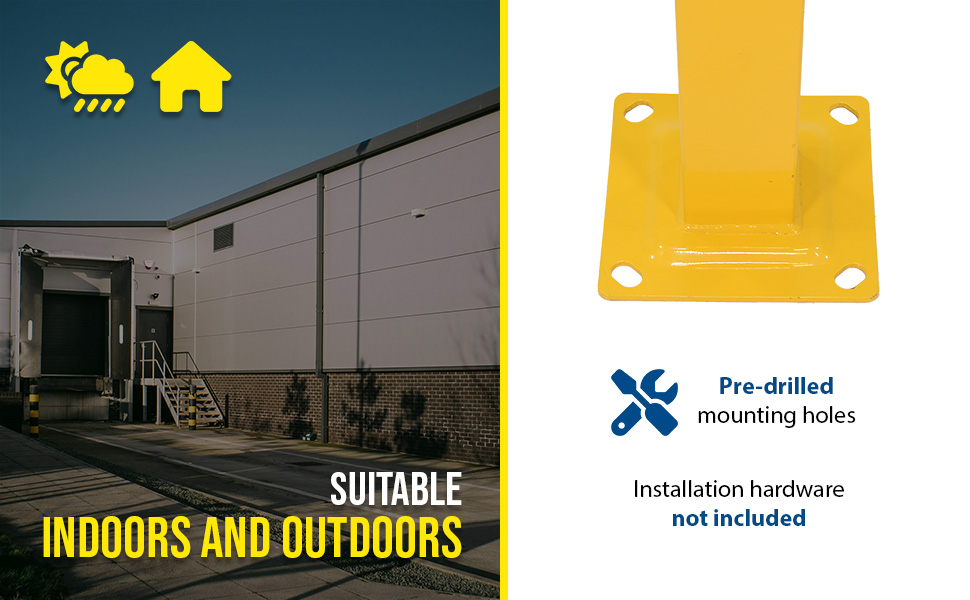The Square Bollard is perfect for an array of industrial setting, both indoors and outside. Constructed of steel for the utmost strength against collisions. It is also powder coated for a smooth finish and a quality appearance. The square design allows the user to better utilize surface space, while also securing vulnerable corners of structures. Pre-drilled mounting holes are included for simple installation.