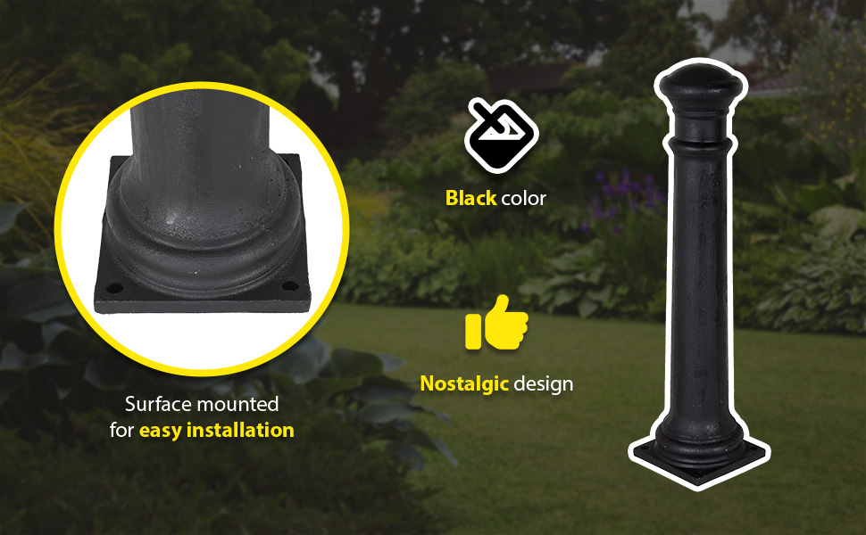 | BOL-CI-40-8 | ![]() | 90 Days Limited Warranty | Ductile Iron Decorative Bollard 40 In. x 8 In. Black | Top Diameter (in.): 8 Base Diameter (in.): 9 | 120 |