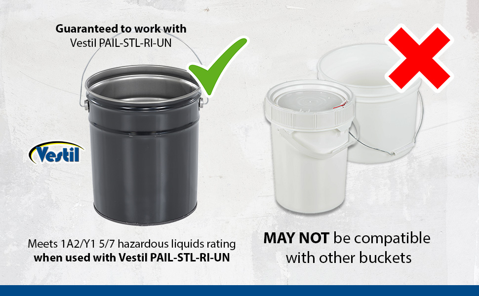 Lids for use with plastic and steel pails. All plastic lids are constructed of 100% prime virgin high density polyethylene (HDPE) and comply with FDA regulations. Suitable for shipping according to D.O.T. standards. Steel crimp-style lids with and without spout available for steel pails. Check Out Vestil's Pails and Pail Lid Closing Press: