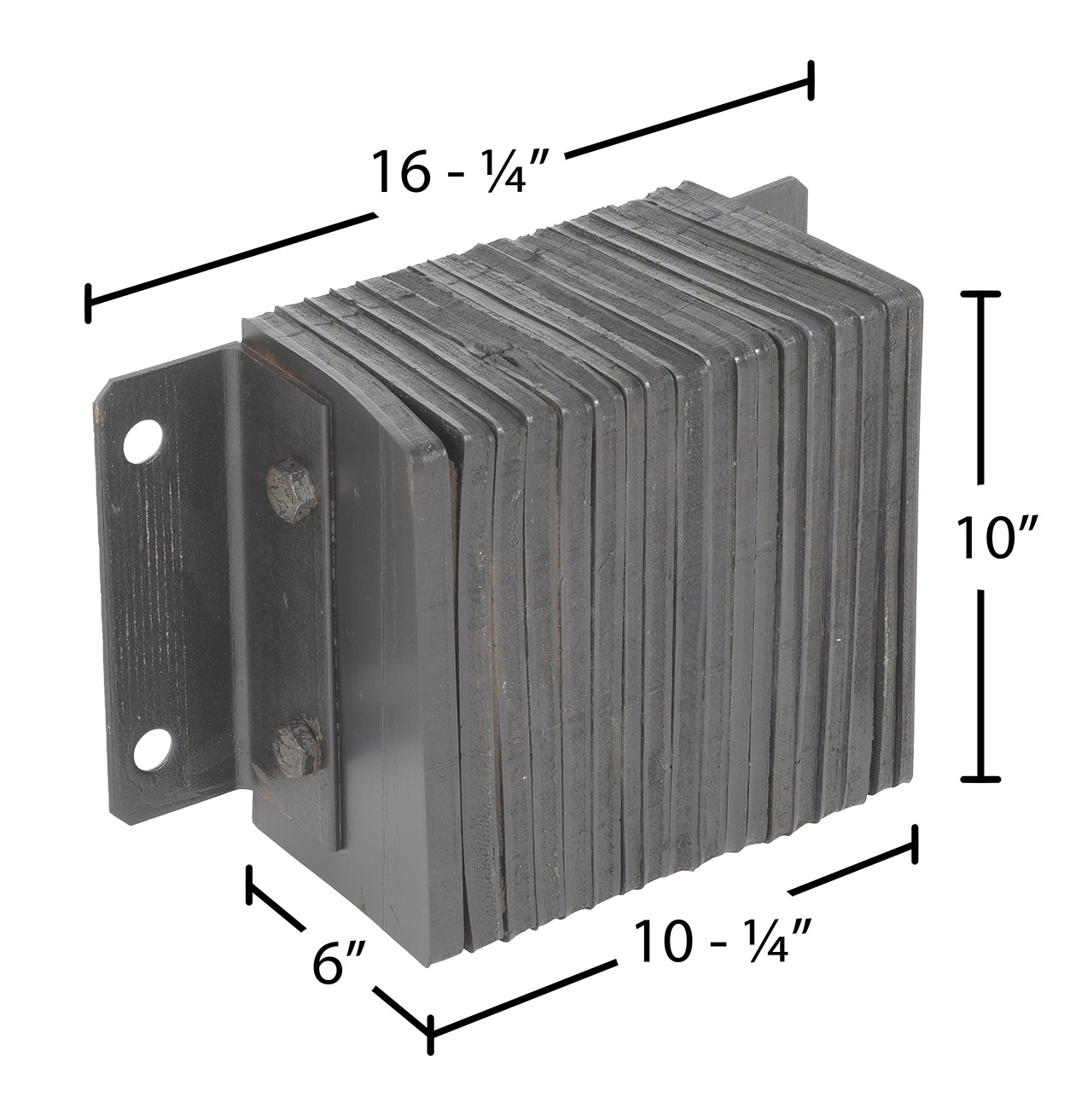 | 1018-6 | ![]() | 1 Year Limited Warranty | Laminated Rubber Dock Bumper 10 In. x 18 In. x 6 In. Black | Rubber Height (in.): 10 Rubber Width (in.): 14-1/4 | 43 | ||