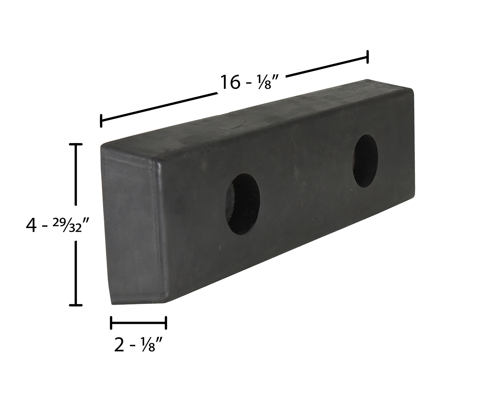 Manufactured from fiber reinforced prime rubber containing nylon and polyester. These molded bumpers are built to endure years of abusive pounding. All units have pre-drilled countersunk mounting holes for easy installation. Plastic face bumper, model B-1213-4PF, features two piece construction fully assembled and ready for installation. Installation hardware sold separately.