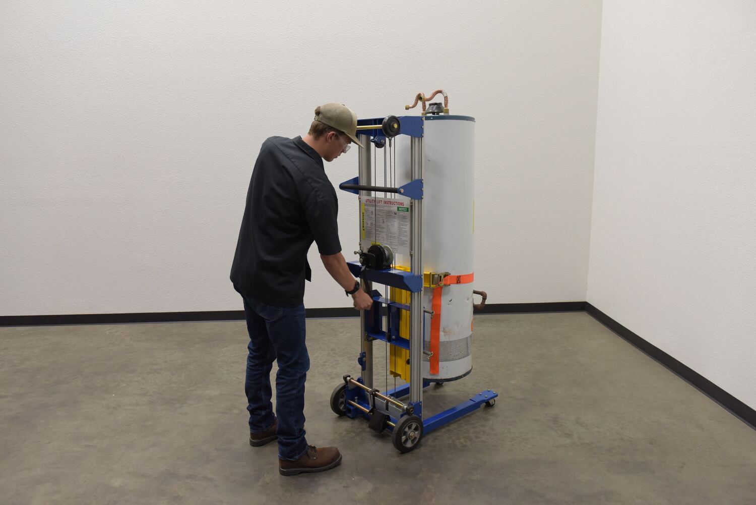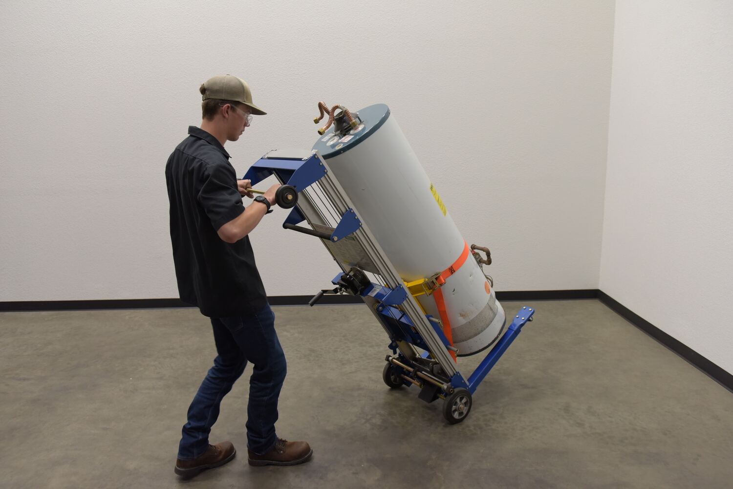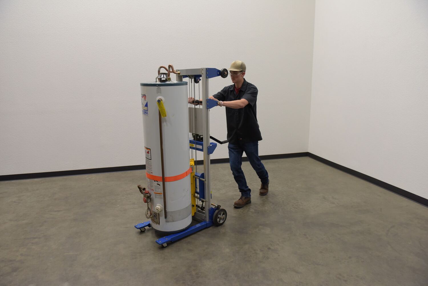 When a heater tank needs to be lifted look no further than the heater tank lift truck. The lift is compact and designed to lift tanks in a variety of sizes. It's constructed of durable steel with a powder coated finish for long lasting durability. Lifting operation is utilized by a hand-crank winch for perfect placement.