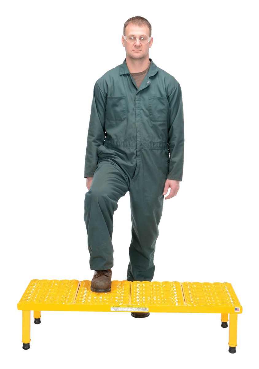 The adjustable work-mate stand minimizes fatigue by elevating workers to heights that are comfortable and ergonomically correct. Especially useful when multiple shift employees operate the same piece of machinery. The height of each leg can be adjusted individually to ensure proper working height.