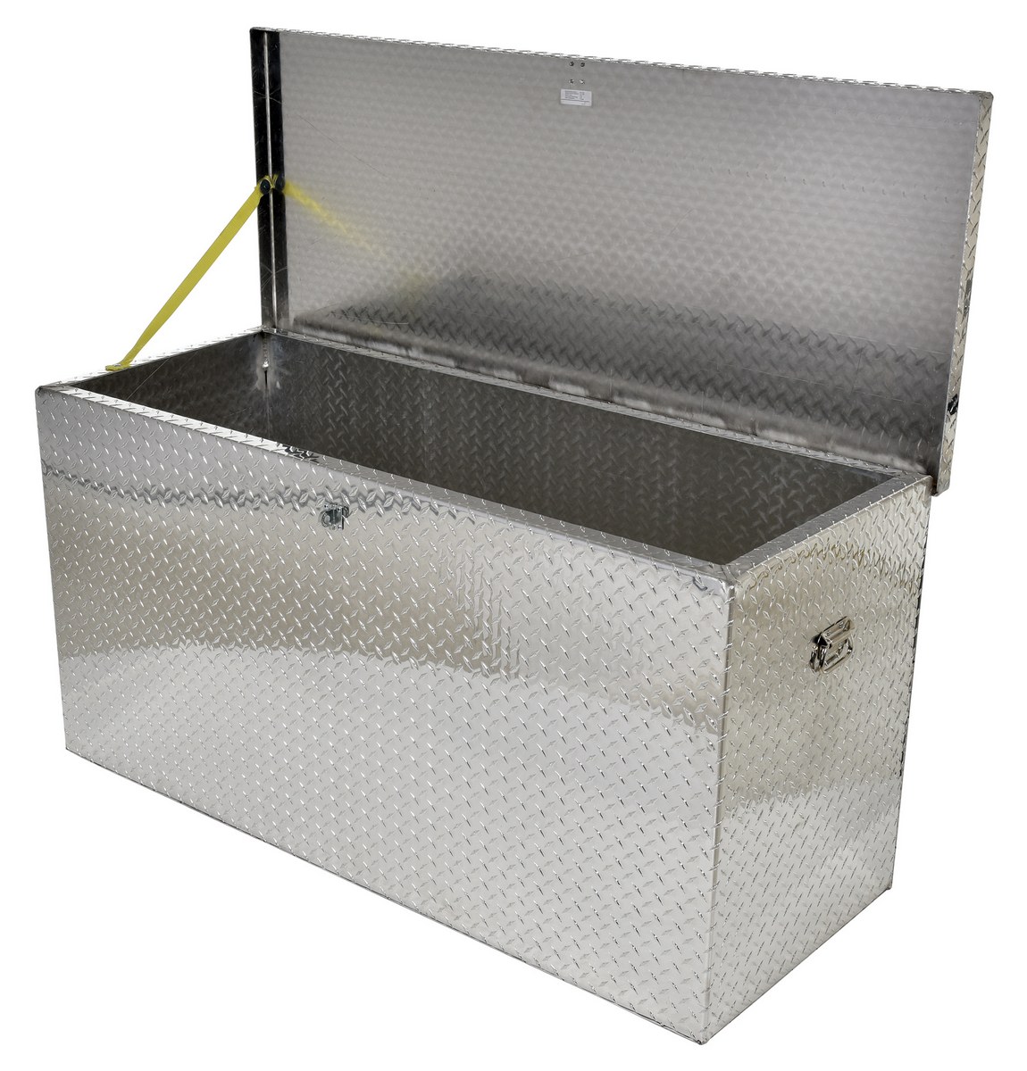 Aluminum Portable Tool Box 25-7/8 In. x 61-1/4 In. x 31-1/16 In. 2500 Lb. Capacity SilverSecure your tools and other belongings from theft with this Aluminum Tread Plate portable tool box. There is a safety double hinged hasp for padlock securing with padlock not included. Constructed of diamond tread plate material. Features two (2) sturdy handles for transporting.
