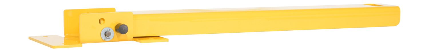 Steel 2 Way Fold Down Bollard 36 Inch Long YellowWhen designated areas need an extra layer of security, look for the two-way folding bollard. This bollard stands tall and can be locked in any position with a padlock (padlock not included). When padlock is removed, the bollard may be adjusted to allow access to area. The bollard lays flat in the folded position, taking up minimal space for straddling. Base plate must be lagged to ground for proper installation (installation hardware not included). Built of steel and finished with a yellow powder coat.