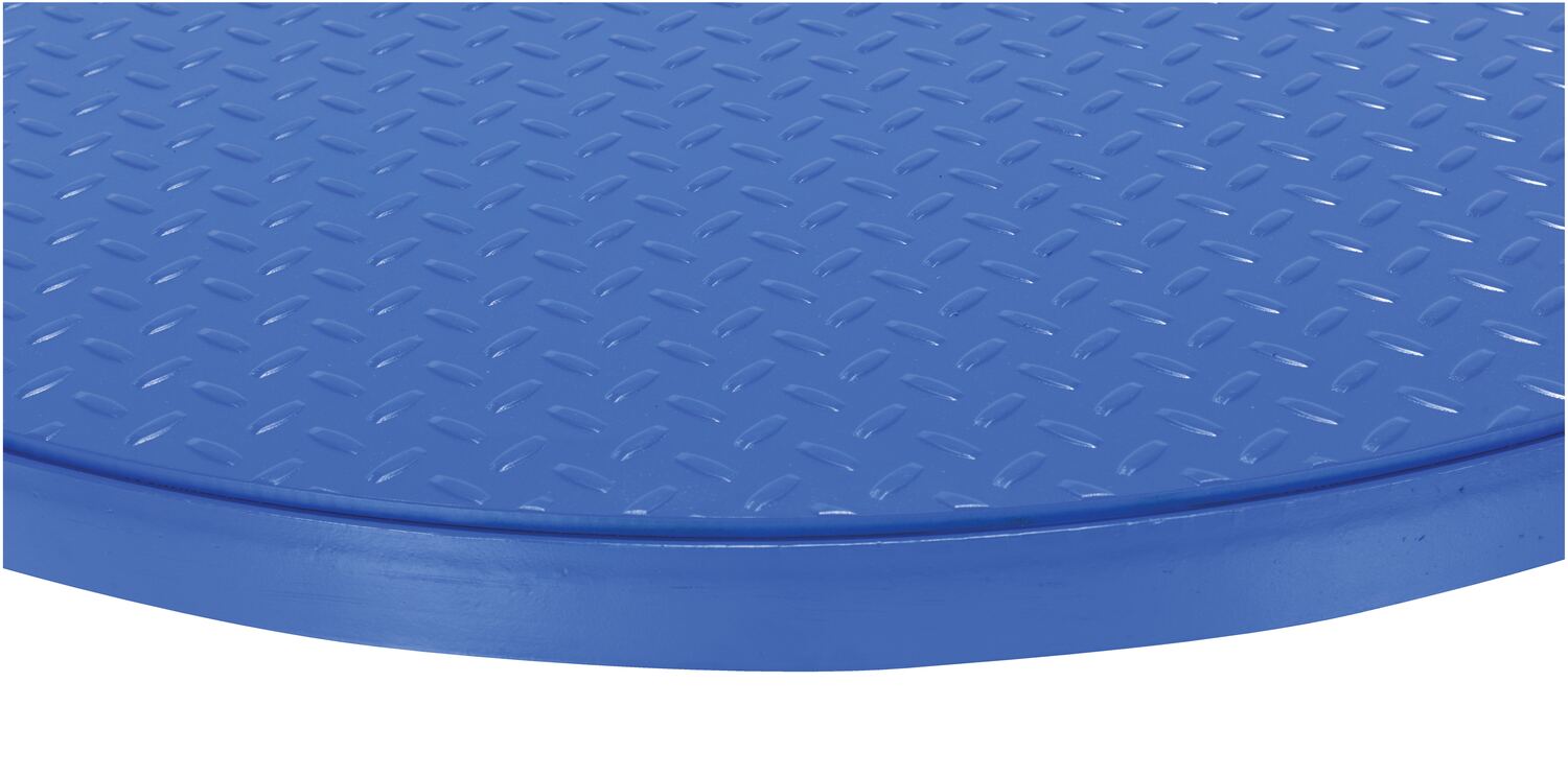 Steel 36 In. Carousel, 4K Capacity, Round Tread Top Plate BlueThis manual carousel rotates material with the assistance of an operator. Now, loading and unloading operations can be done more efficiently minimizing fatigue and risk of back injury. The carousel may be added to an existing work bench, scissor table, or simply placed on the floor. A steel constructed top plate is included with the carousel for enhanced stability during use.