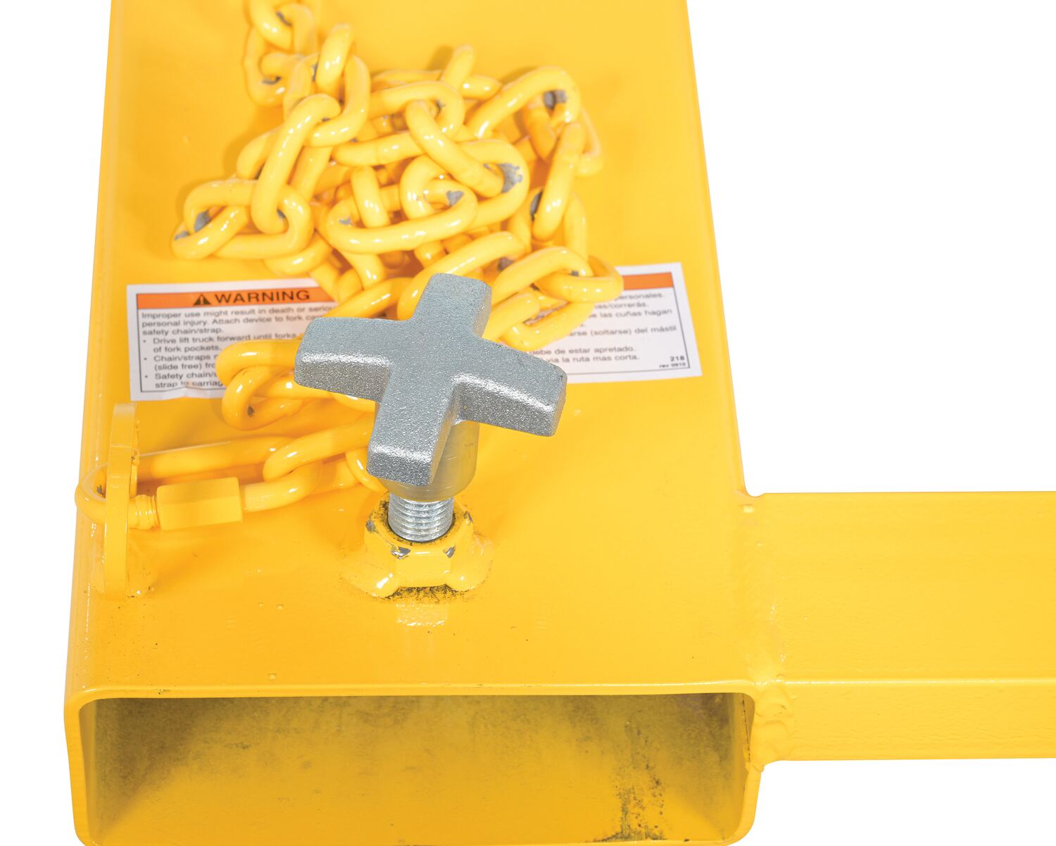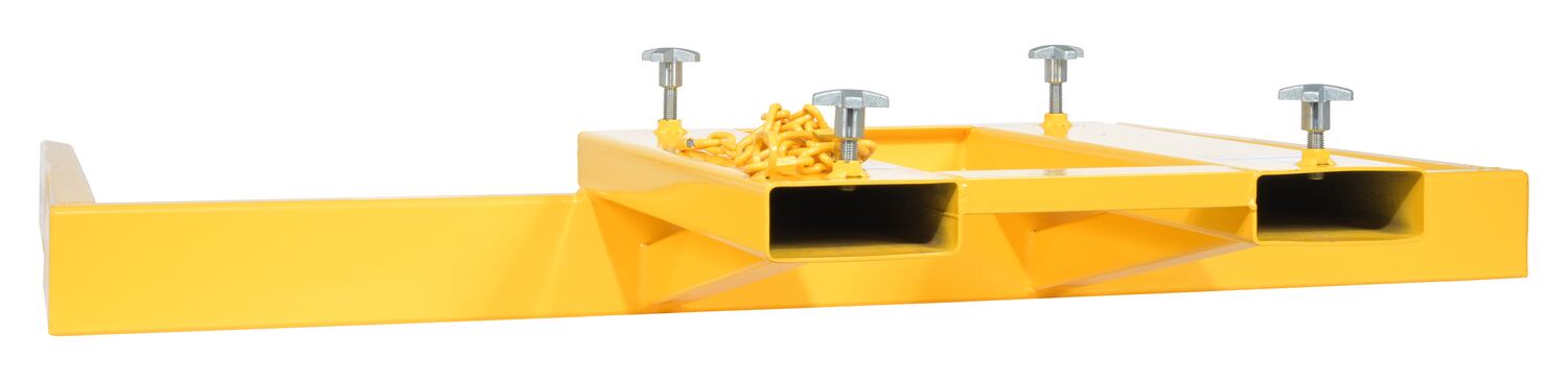 Steel Front Load Dumpster Mover 72" Wide 2,000 Lb. Capacity YellowWhen a dumpster needs to be transported, the dumpster mover is there for the job! This unique design provides a safe and efficient way to maneuver front load dumpsters and hoppers. With forks set at a permanent 72" wide, the ability to utilize vertically fixed fork pockets has rarely been easier.