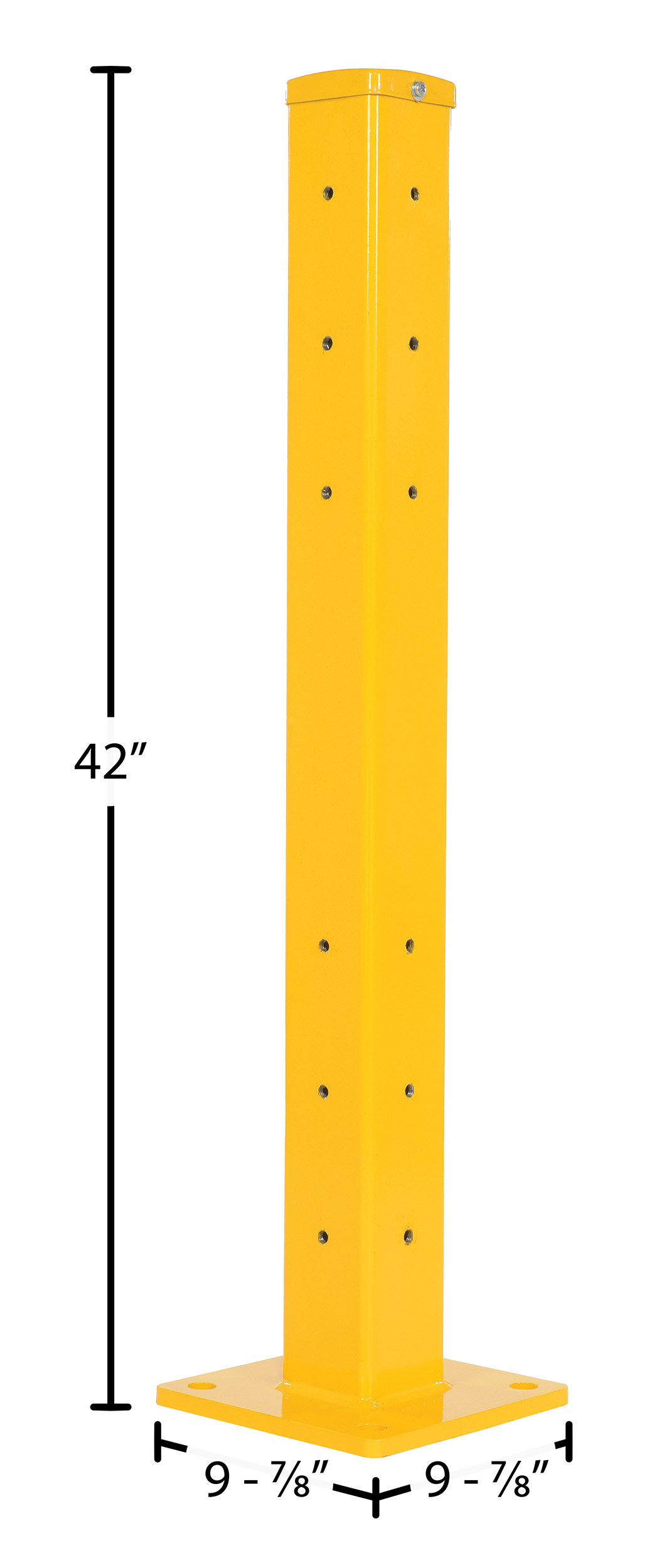 Protecting equipment, inventory, and most importantly individuals from damage or injury is always a concern. But, with a structurally strong steel guard rail post those worries can start to be eased. This rail post provides the support needed to maintain indoor and outdoor guardrail systems (not included). With a unique design, the post allows rails (not included) to be positioned quickly. Additional posts are available and sold separately.