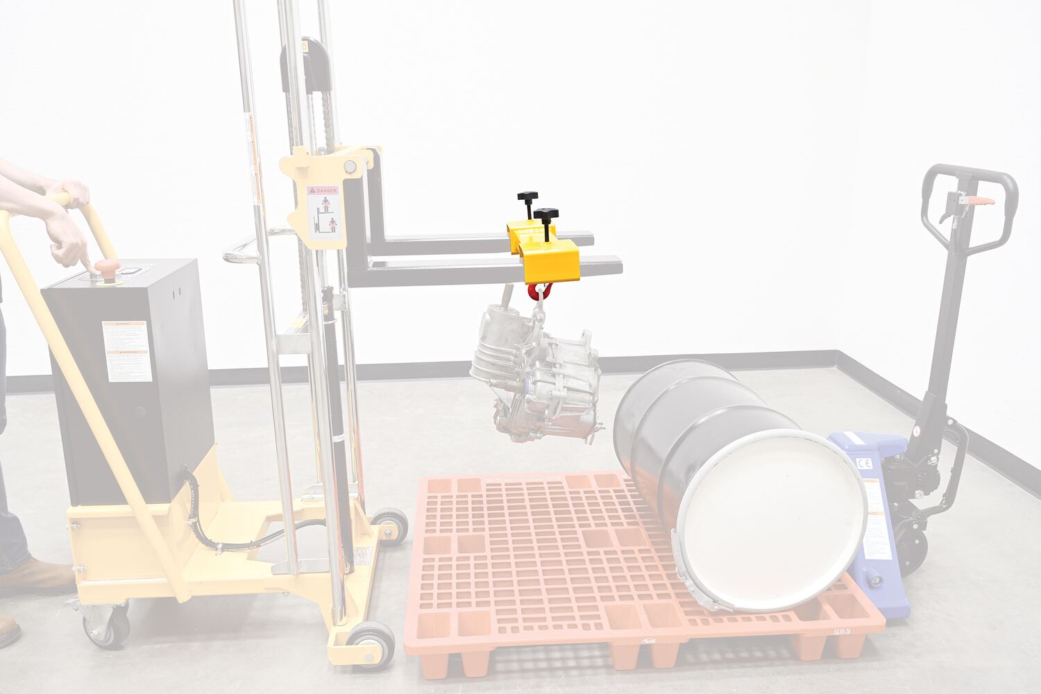The hook attachment is designed of a strong construction for lifting awkward heavy products. A simple installation allows the user to obtain immediate use of the hook and start maneuvering products. A bright yellow finish promotes safety and visibility while transferring units.