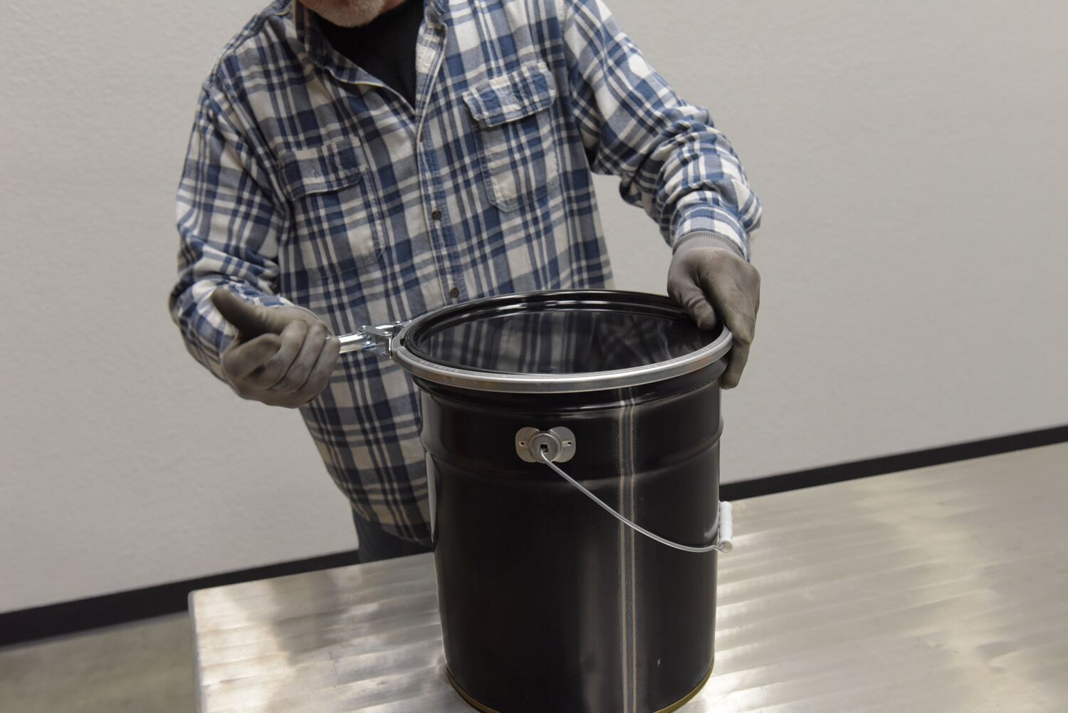 Steel UN Rated Lid And Lever Lock Combo For 5 Gallon Bucket BlackSteel lid for use with steel pail. UN rated with lever lock.
