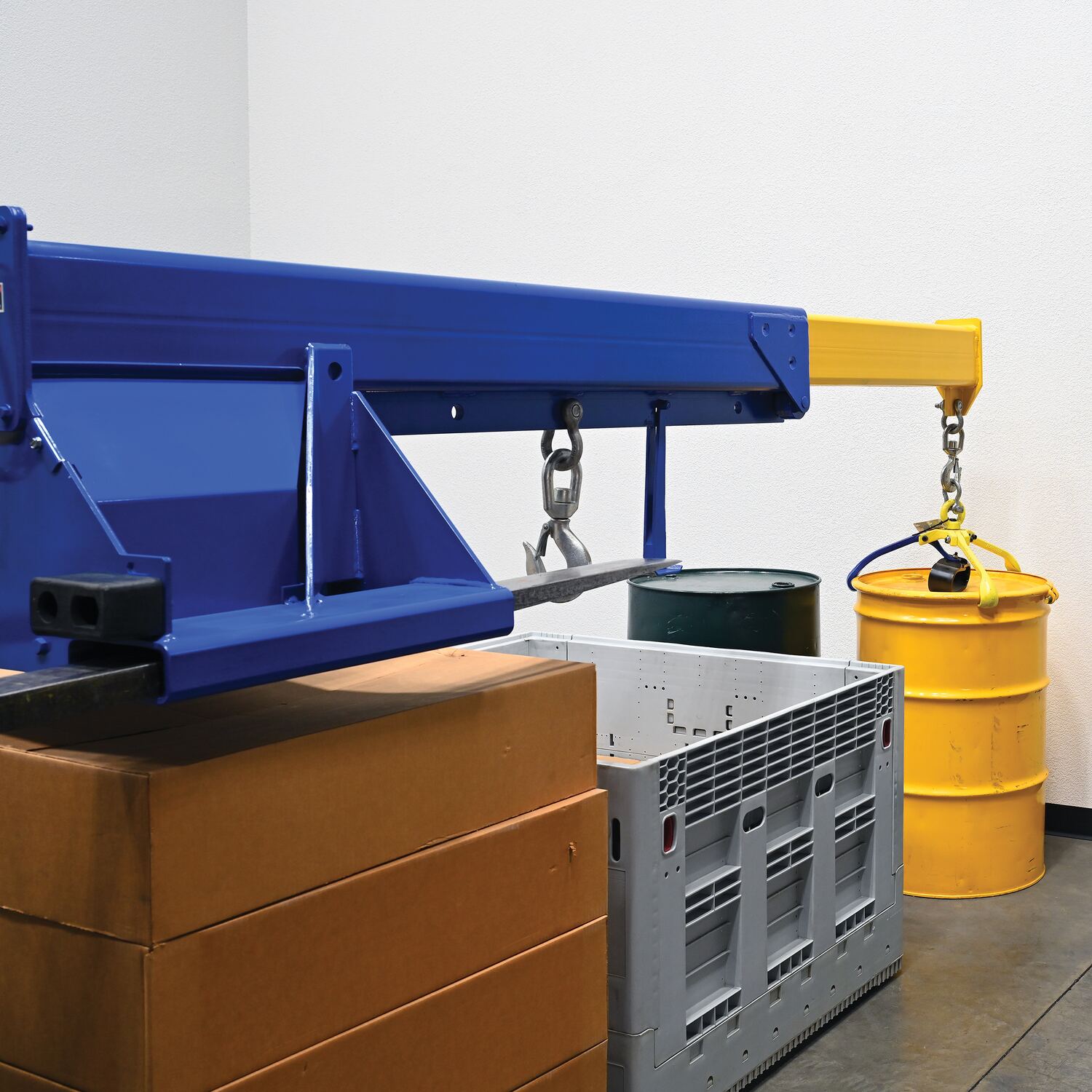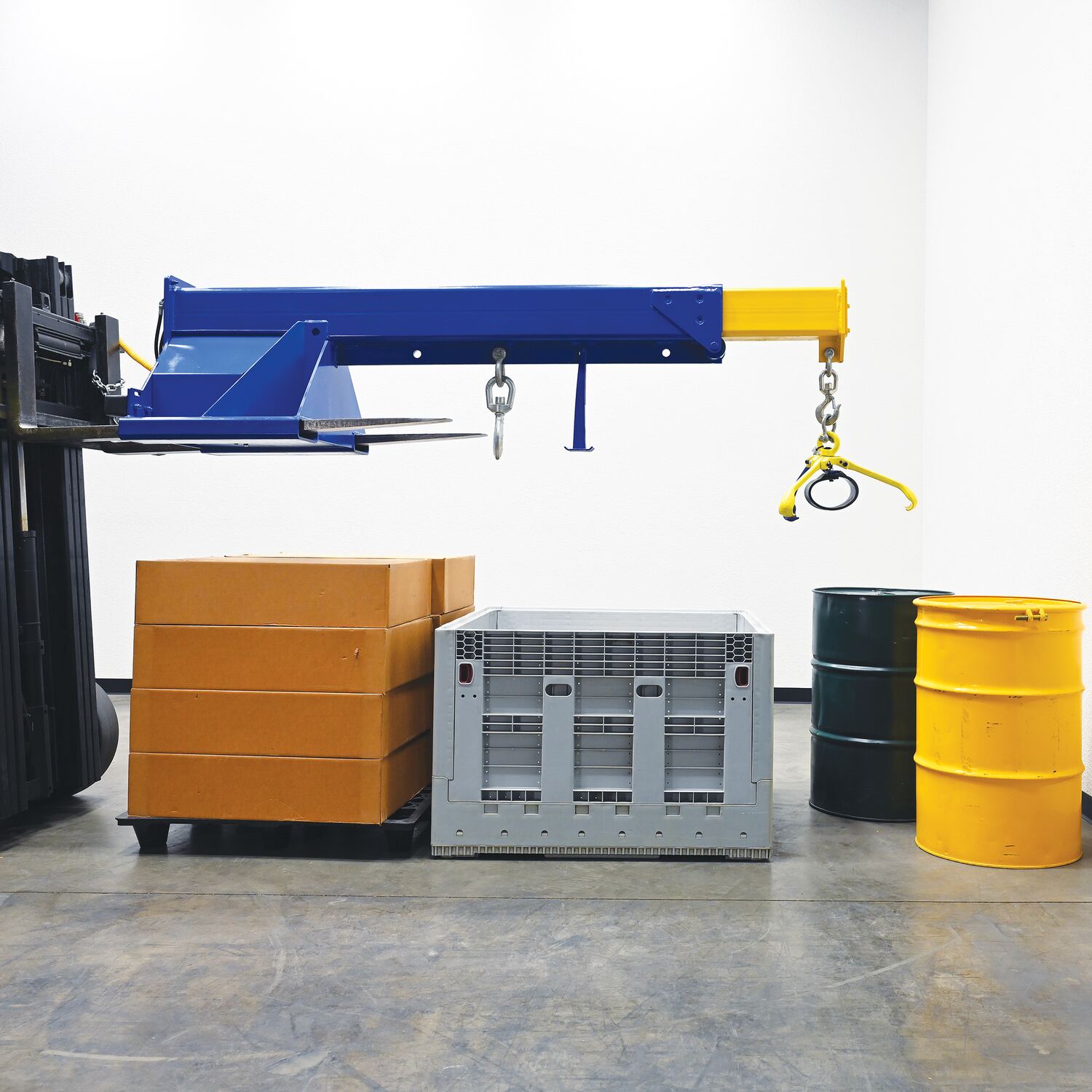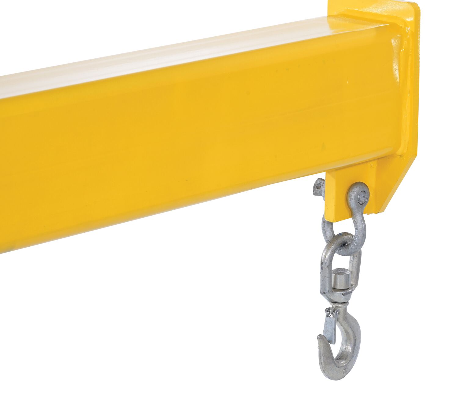 Steel Hydraulic Telescoping Boom 12 Volt DC 24 In. Fork Pocket Center 8,000 Lb. CapacityThe DC powered telescoping boom has all the benefits of the standard lifting boom, except now it has the capability of being powered. The DC powered design includes a power unit housed between the fork tubes and the outer boom. By using the handheld controller the boom can be extended or retracted. The hand held controller connects to the power unit via a pigtail cord. Painted for a smooth finish and to limit abrasion. Includes two (2) lifting hooks.