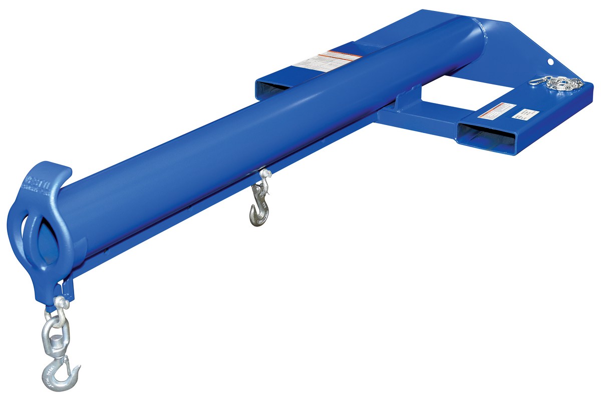 Steel Economy Non Telescoping Lift Boom 30 In. Fork Pocket Center 4,000 Lb. Capacity Blue and YellowUnique performance, convenience, and safety features are built into every lift master boom. Fabricated from structural steel with welding to meet AWS creates a rugged and durable boom that will provide long term service. A safety restraint secures the boom to the fork truck for safe operation. Includes two (2) lifting hooks.