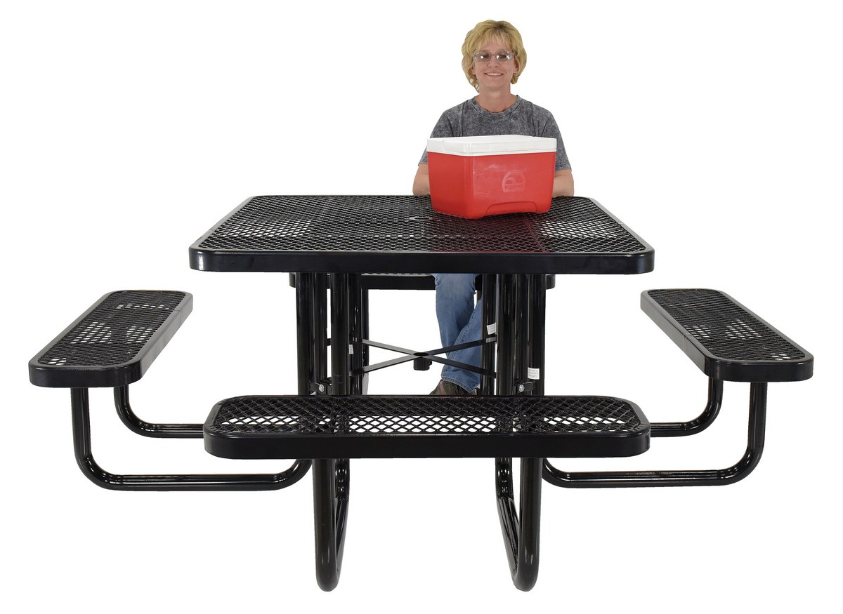 Steel Picnic Table Expanded Metal Square Top 46 In. x 46 In. Black