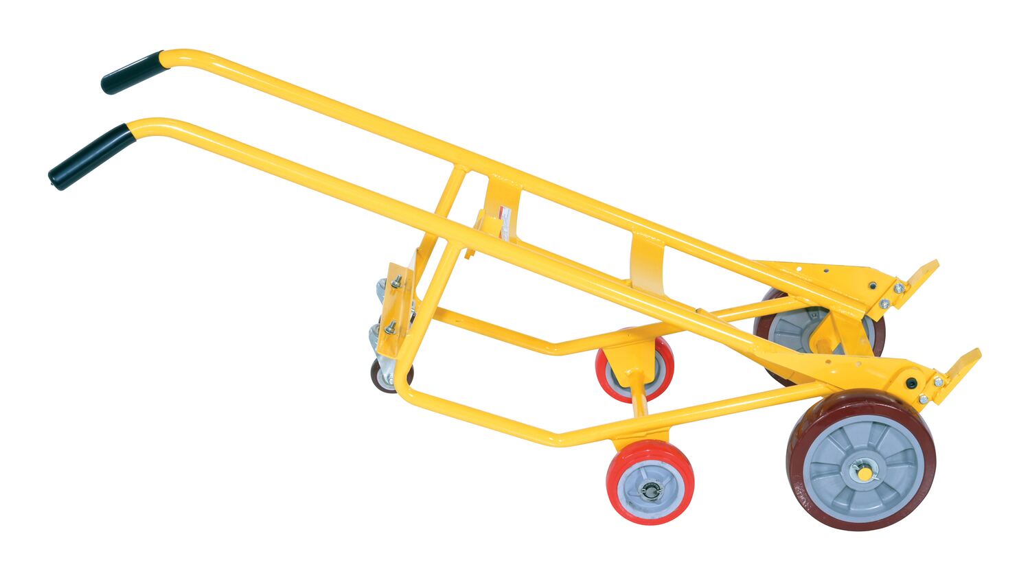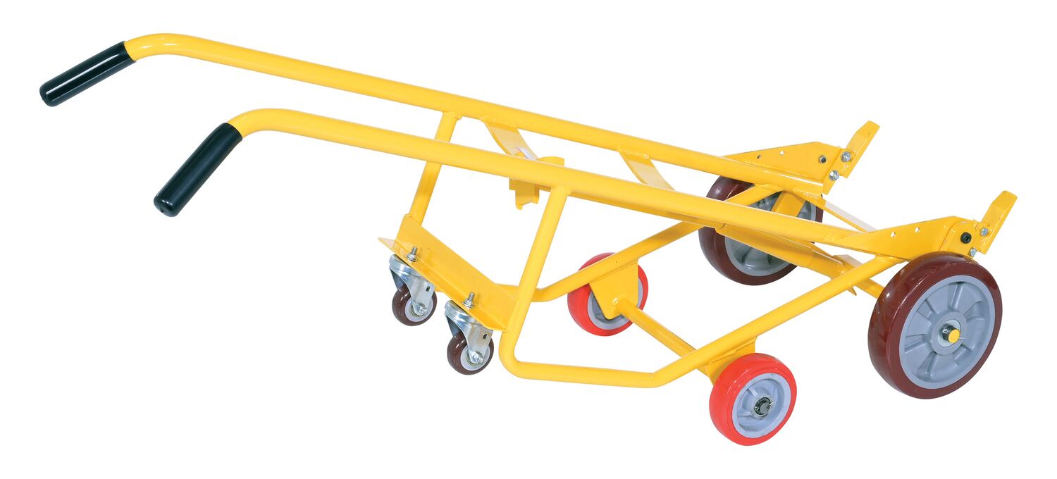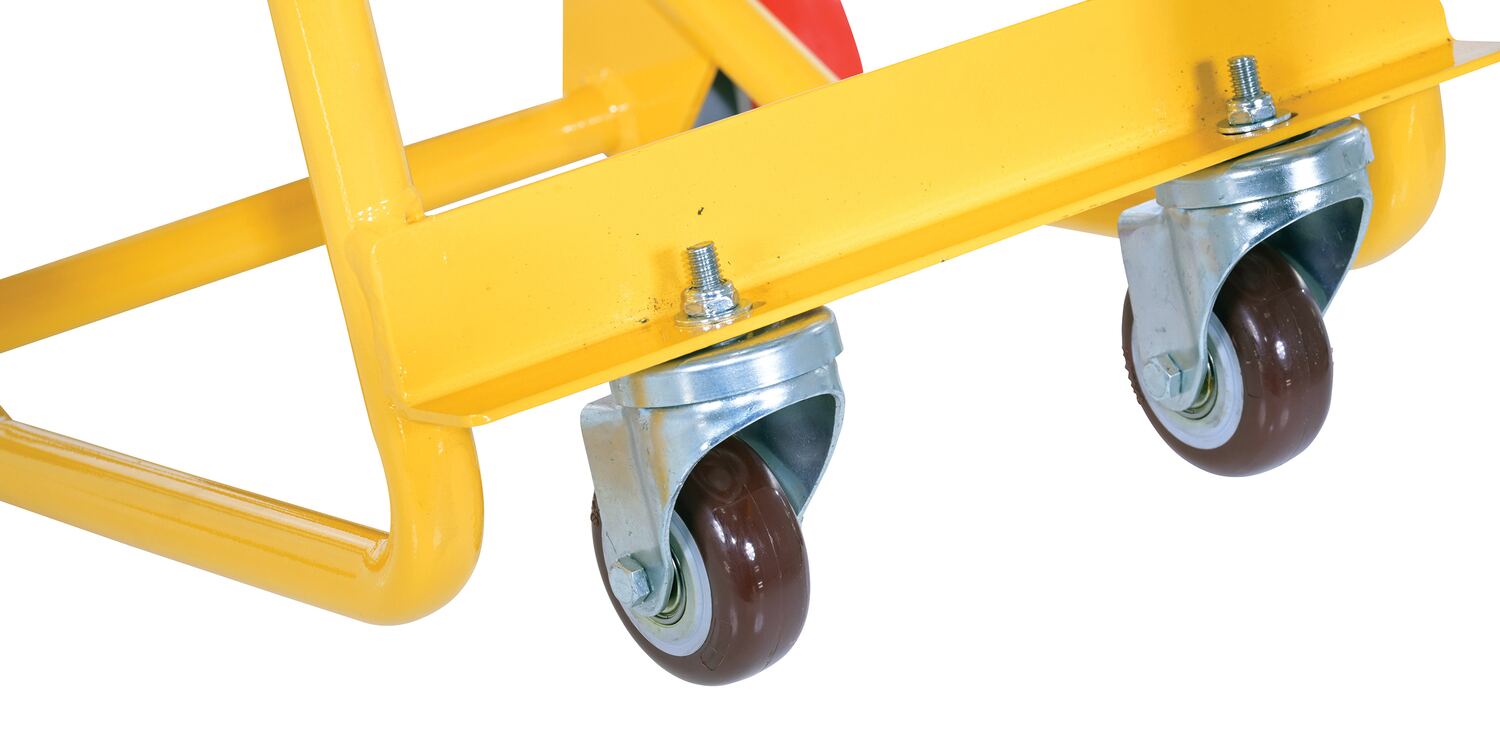 Steel Drum Truck Cradle With Poly On Poly 20-1/16 In. x 23-11/16 In. x 60-5/8 In. 1000 Lb. Capacity YellowThis multi-purpose drum truck/cradle is one of the most versatile drum trucks in the industry. This innovative product allows the operator to easily tip back the truck in order to transport drums ergonomically on four (4) wheels. Unit doubles as a drum cradle for storage and dispensing all in one. This unique design also allows the operator to place drums and retrieve off of a pallet. Standard with a wheeled undercarriage that positions the drum horizontally for drainage or storage. An integral self-storing bung wrench is standard. This attractive feature not only opens numerous drums, but helps to keep the drum snug on the truck. Powder coat finish.