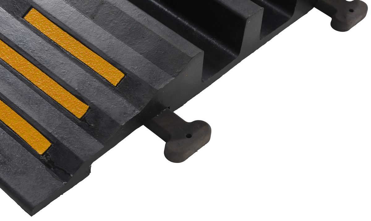 Molded Rubber Hose/Cable Crossover Bridge 32-5/8 In. x 12 In. x 3-1/2 In. 2400 Lb. Capacity BlackThe molded rubber hose and cable Crossover is designed to protect cables and hoses from pedestrian and rolling traffic. The top surface of each crossover includes serrations for extra traction. Optional connectors may be used to interlock individual units together to form wider crossovers. Simply lock together as many units as required. This crossover is ideal for people who are always switching out cables but don't want to move the ramp.