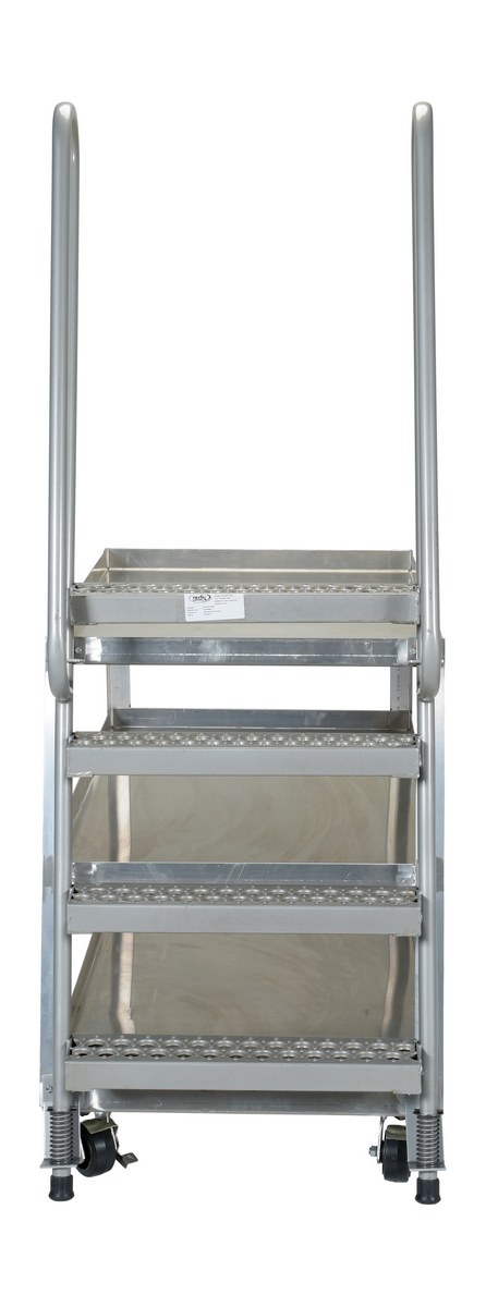 Aluminum High Duty Stock Picker Truck with Steel Ladder 56 In x 27-7/8 In x 73-5/16 In 500 Lb. CapacityThis oversized hi-duty stock picker truck is perfect for large jobs. Ideal for oversized cartons, boxes, parts, and supplies. A spring loaded steel ladder for sure, safe climbing, and loading. Steps have non-skid footing with self-cleaning surface. Each unit features three (3) shelves. Ladders have a baked in silver powder coated finish.