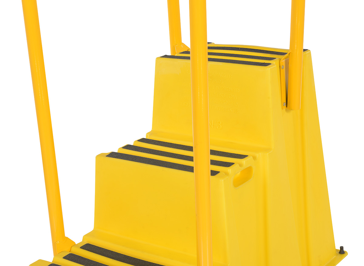 Polyethylene Nestable with Hand and Back Rails Casters 3 Step 500 Lb. Capacity Yellow