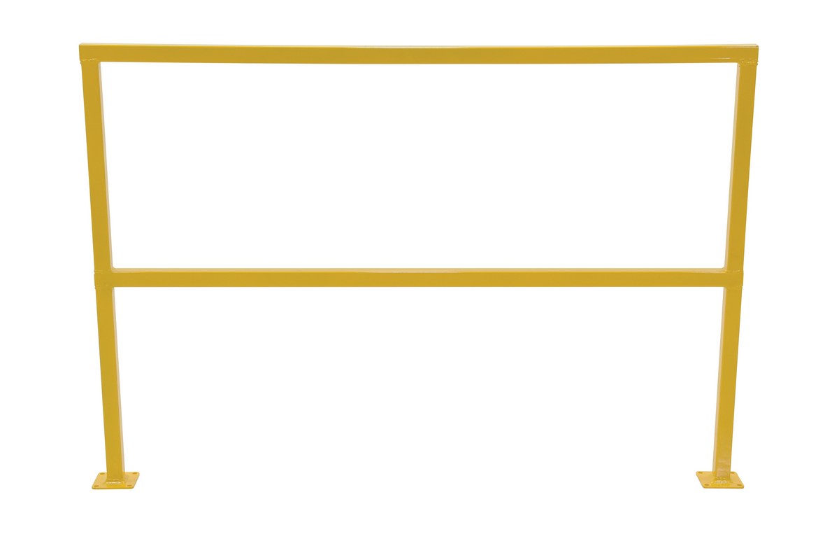 Steel square safety Handrail provides an economical way to protect people and machinery. Applications include loading docks, floor openings, walkways, and mezzanines. Highly visible safety yellow powder coat finish, hardware included.