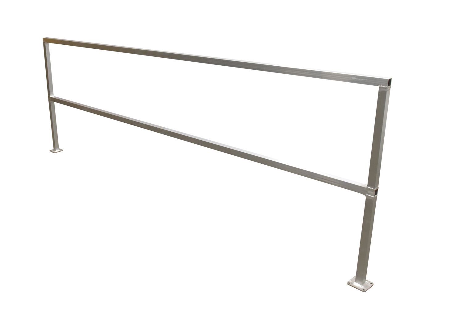 Aluminum Safety Handrail 122-1/2 In. x 4 In. x 42 In. SilverAluminum square safety Handrail provides an economical way to protect people and machinery. Applications include loading docks, floor openings, walkways, and mezzanines. Robust design provides stabilization throughout those areas.