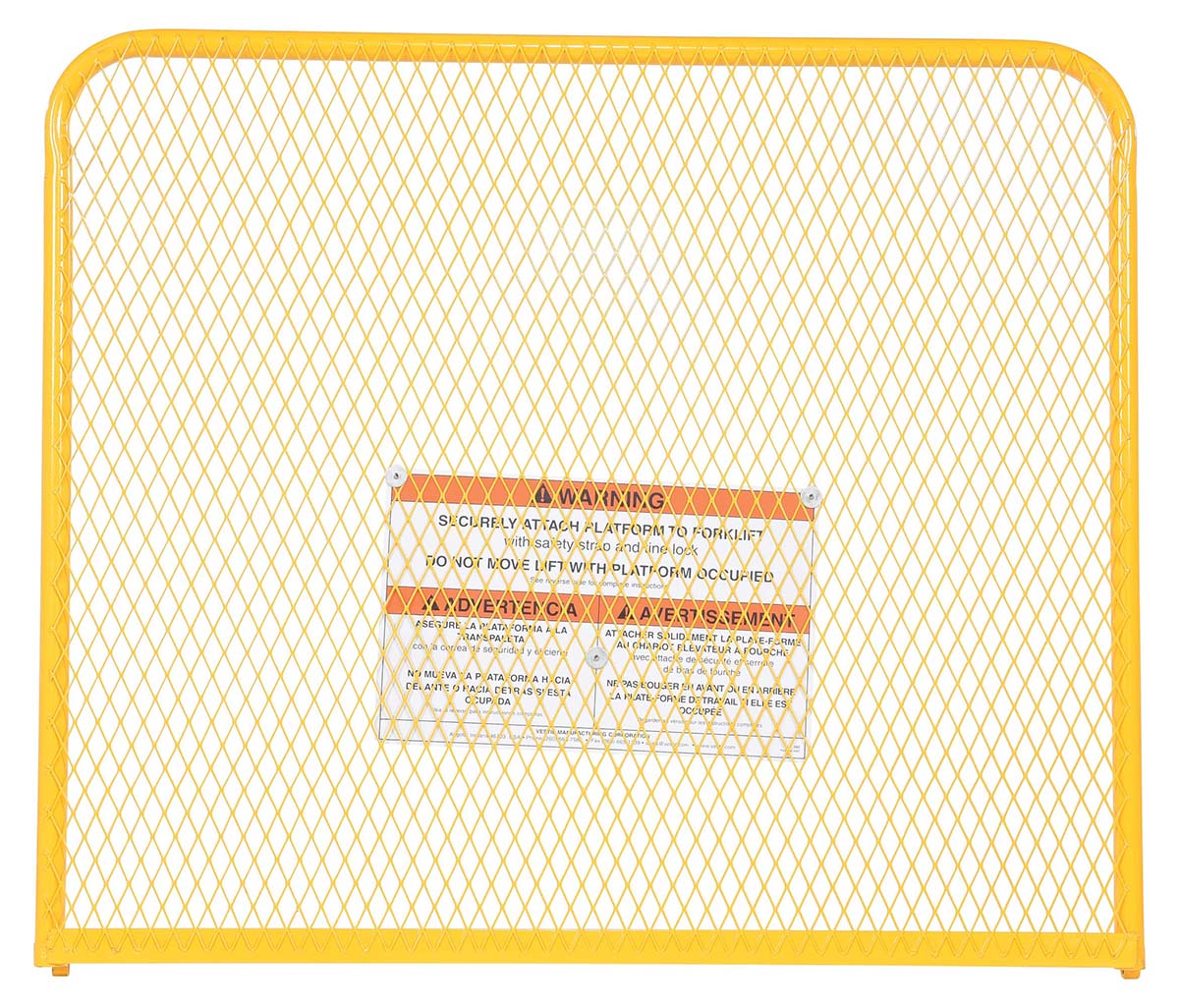 The expanded metal back is a great addition to the work platform. The extended back adds extra security for the user to function comfortably. The extended back has a yellow finish for clear visibility. Not compatible with WP-CA.