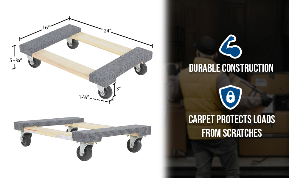 | Hardwood Carpeted Dolly 24 In. x 16 In. x 6-3/4 In. 1200 Lb. Capacity Tan | Uniform Static Capacity (lb.): 1,200 Deck Width (in.): 16 | 34 |