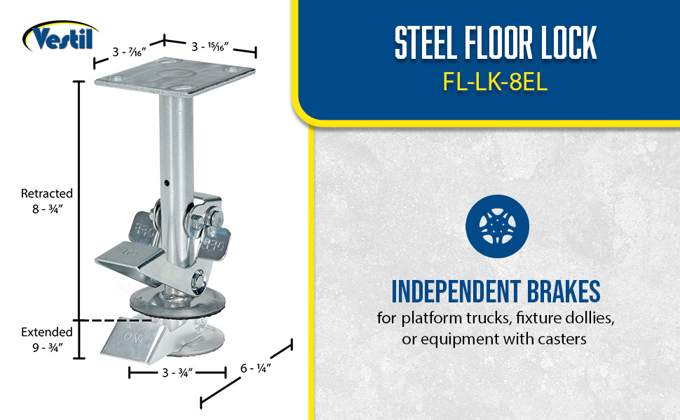 | Steel Top Mount Floor Lock 4-7/8 to 5-5/8 In. Height Silver 1,200 Lb. Capacity | Caster Diameter (in.): 4 Mount Height (in.): 5-5/8 | 4 |