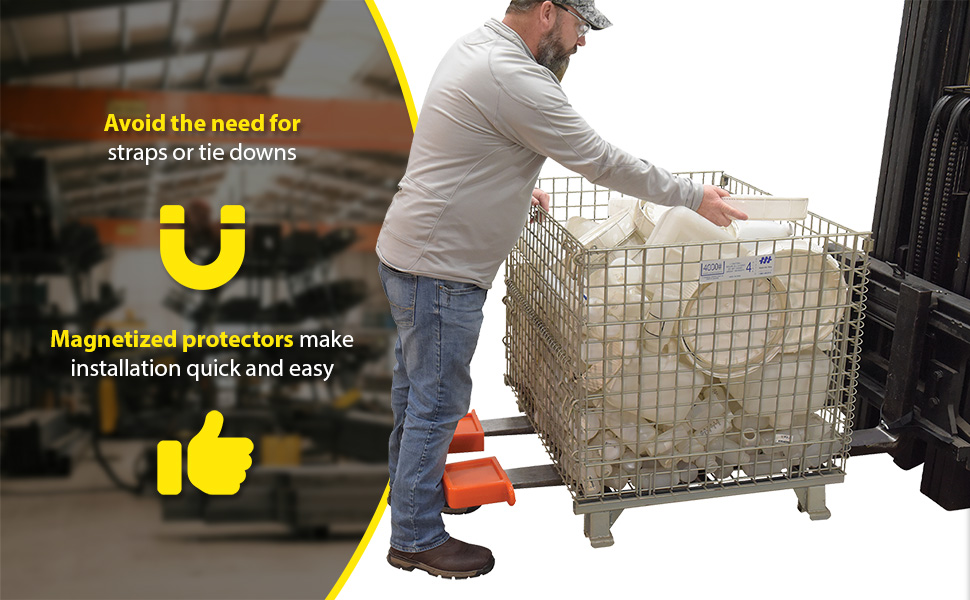 A magnetized fork protector provides safety to both forks and additional objects. The magnetization minimizes the set up time by limiting the need for straps or fork protector tie downs. With a durable design the units are lightweight for simple mounting and compact for storage when not in use.