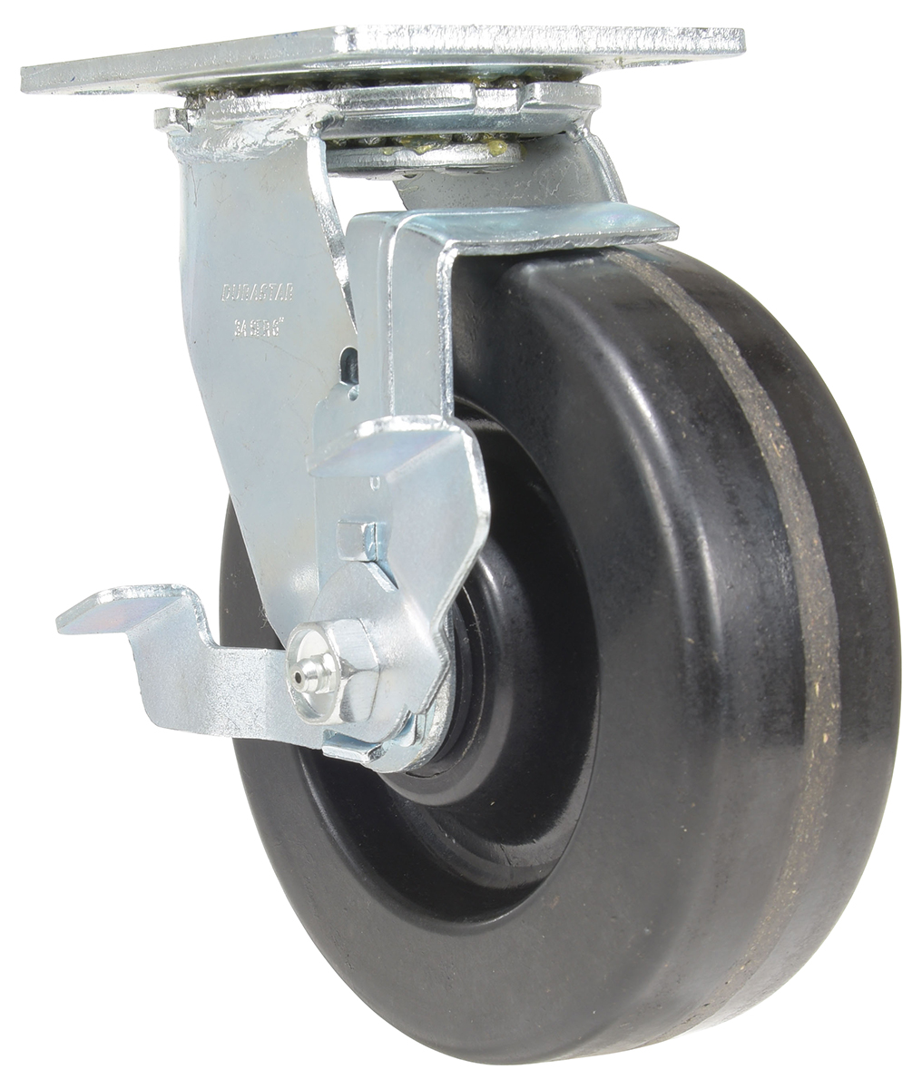 Phenolic wheels have a high resistance to impact damage, while providing protection for floors in commercial and industrial settings. Resistant to water, oil, and grease. It is also spark resistant and operates in a wide temperature range. Black tread color. Wheel core is phenolic. 100 Shore A.