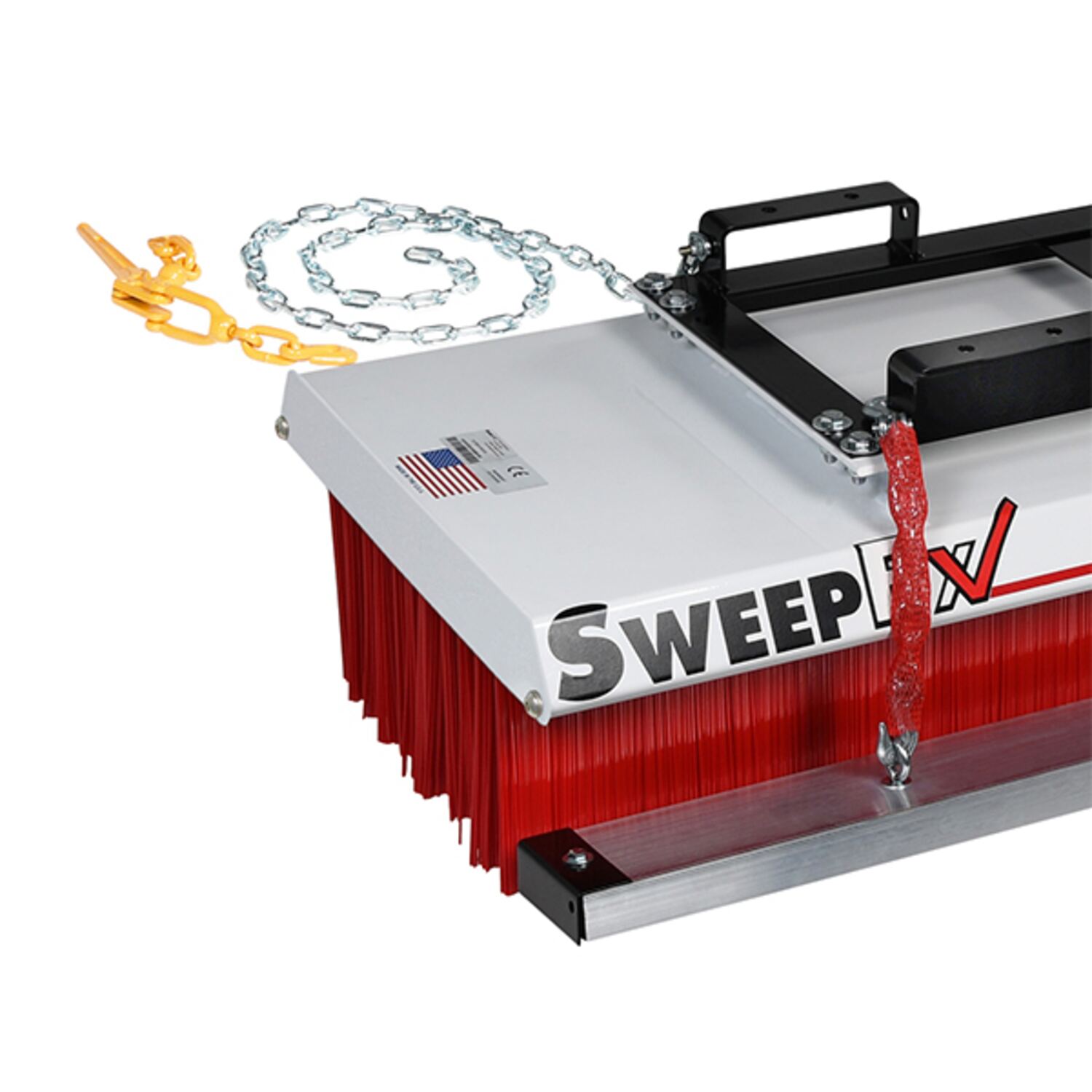 The broom comes with 11 rows of replaceable polypropylene brush sections that are easy to replace. Maximize service life of the bristles by periodically rotating and reversing the brush sections within the broom housing. Unlike rotary brooms, Mega Broom attachments don't throw debris. Instead, all material is kept in front of the bristles to minimize dust and flying debris. There are no moving parts to maintain. In fact, the only maintenance requirement is to rotate and reverse the brush sections.