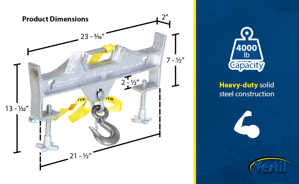 D-FORK-4-SL D-FORK-4-SLSteel Double Swivel Hoist Optioning Hook 2 In x 23-3/16 In x 14-1/2 In 4000 Lb. Capacity SilverUniform Capacity (lb.): 4,000