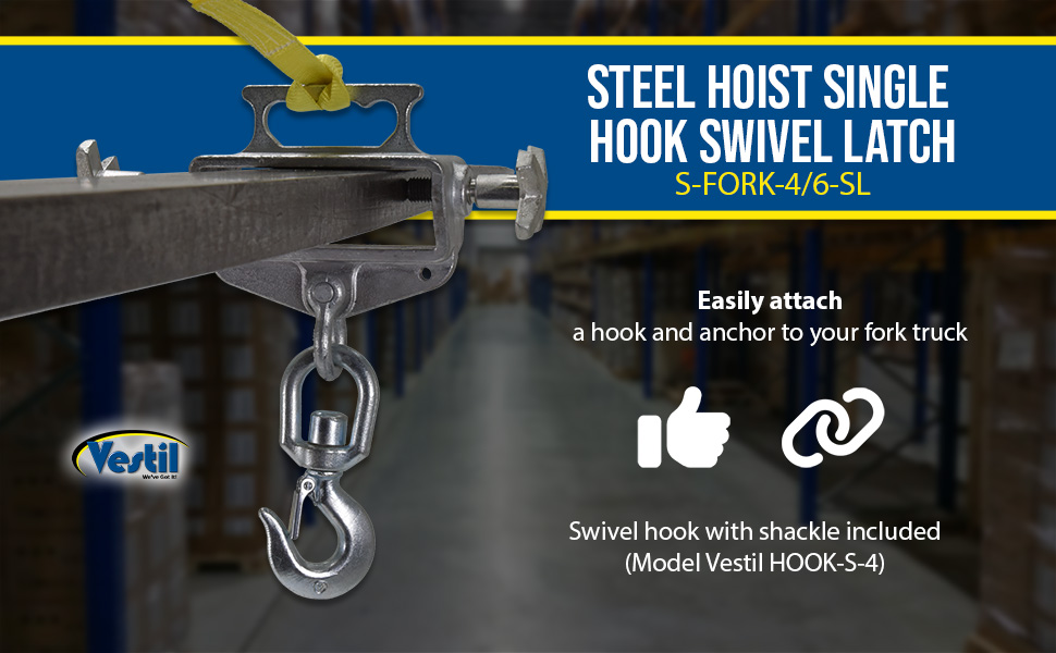S-FORK-4/6-SL S-FORK-4/6-SLSteel Hoist Single Hook Swivel Latch 3-7/8 In x 13-1/2 In x 14-13/16 In 4,000 Lb. Capacity SilverUniform Capacity (lb.): 4,000