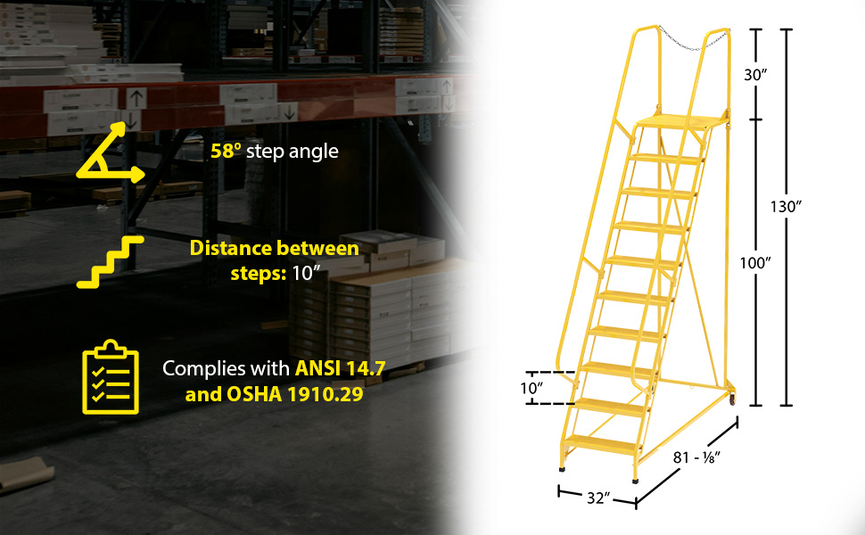 | Steel Maintenance Ladder 58 Degree 9 Perforated 24 In. Step Width 350 Lb. Capacity Yellow | Uniform Capacity (lb.): 350 Step Angle (degrees): 58 | 279 |