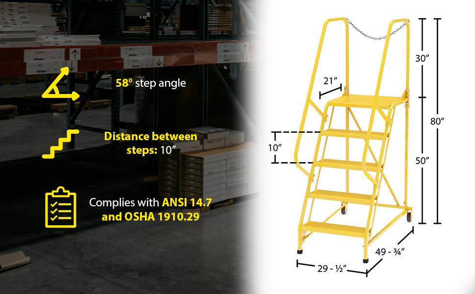 | Steel Maintenance Ladder 58 Degree 5 Perforated 24 In. Step Width 350 Lb. Capacity Yellow | Uniform Capacity (lb.): 350 Step Angle (degrees): 58 | 180 |