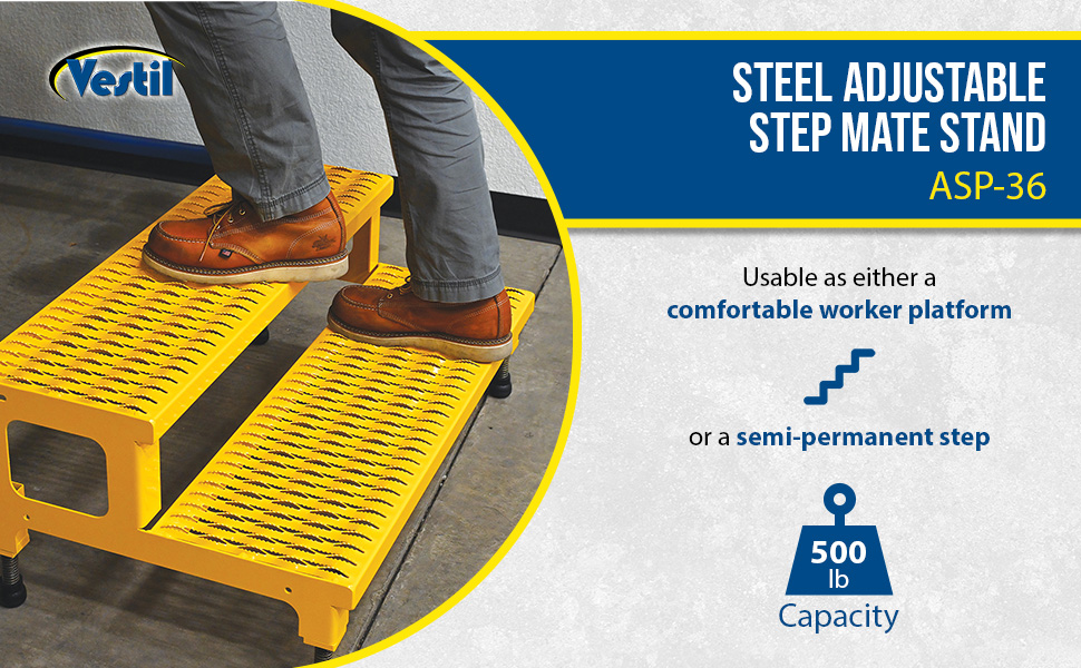 ASP-36 ASP-36Steel Adjustable Step Mate Stand 2 Step 22-7/8 In. x 36-3/16 In. x 15-1/4 In. 500 Lb. Capacity YellowUniform Capacity (lb.): 500