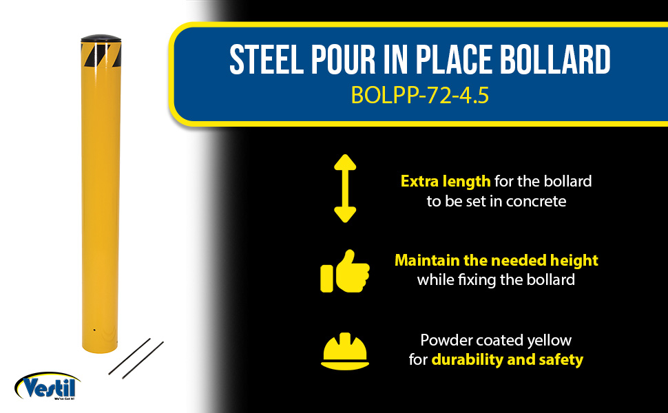 | Steel Pour In Place Bollard 72 In. x 4-1/2 In. Yellow | Usable Height (in.): 72 Outside Diameter (in.): 4-1/2 | 40 |