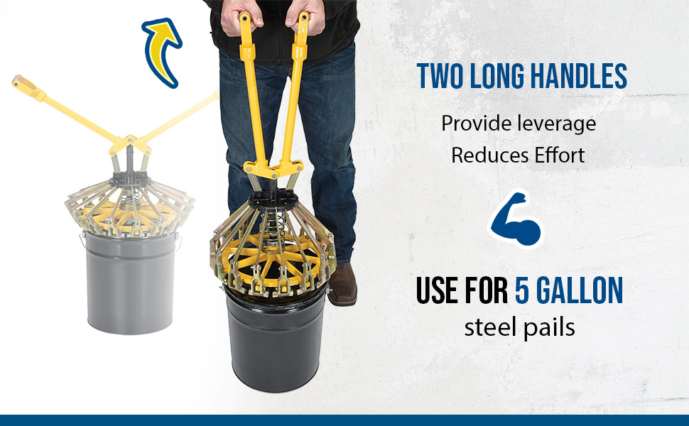 • Long handles provide leverage reducing effort necessary to secure lids to pails