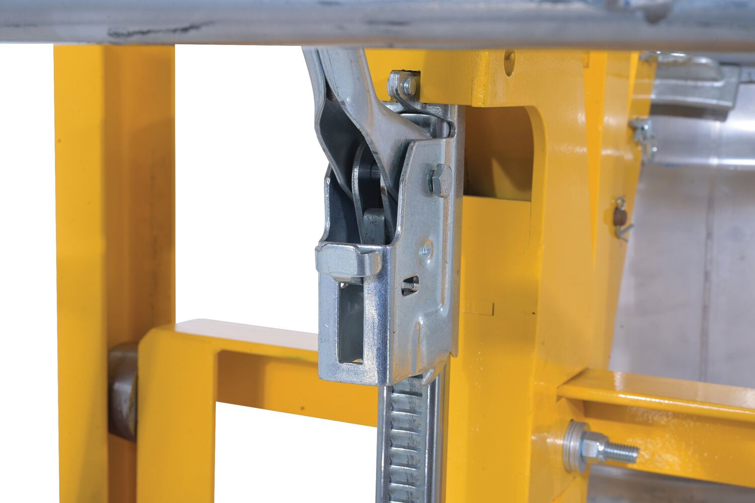 Caster Type: Swivel | Operation: Hand Ratchet | Accepts: Steel, Plastic and Fiber Drums with top lip |