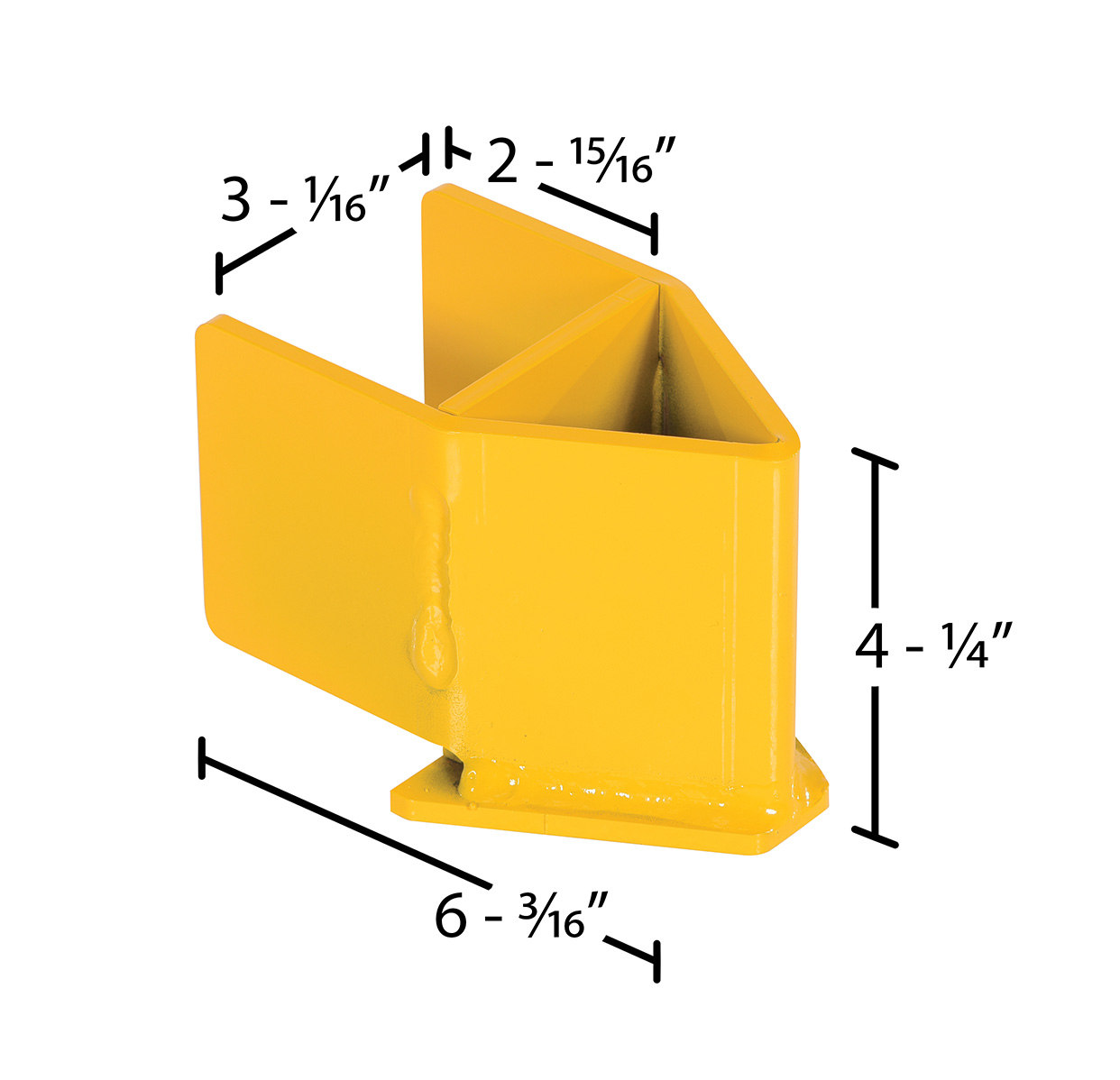 Steel Upright Rack Guard 7 In. x 5 In. x 5 In. YellowA rack upright guard is the perfect economical way to protect against damage to pallet racking. The guard simply fits to the foot of the racking system and protects the front as well as wrapping around the sides. Colored yellow for clear visibility.