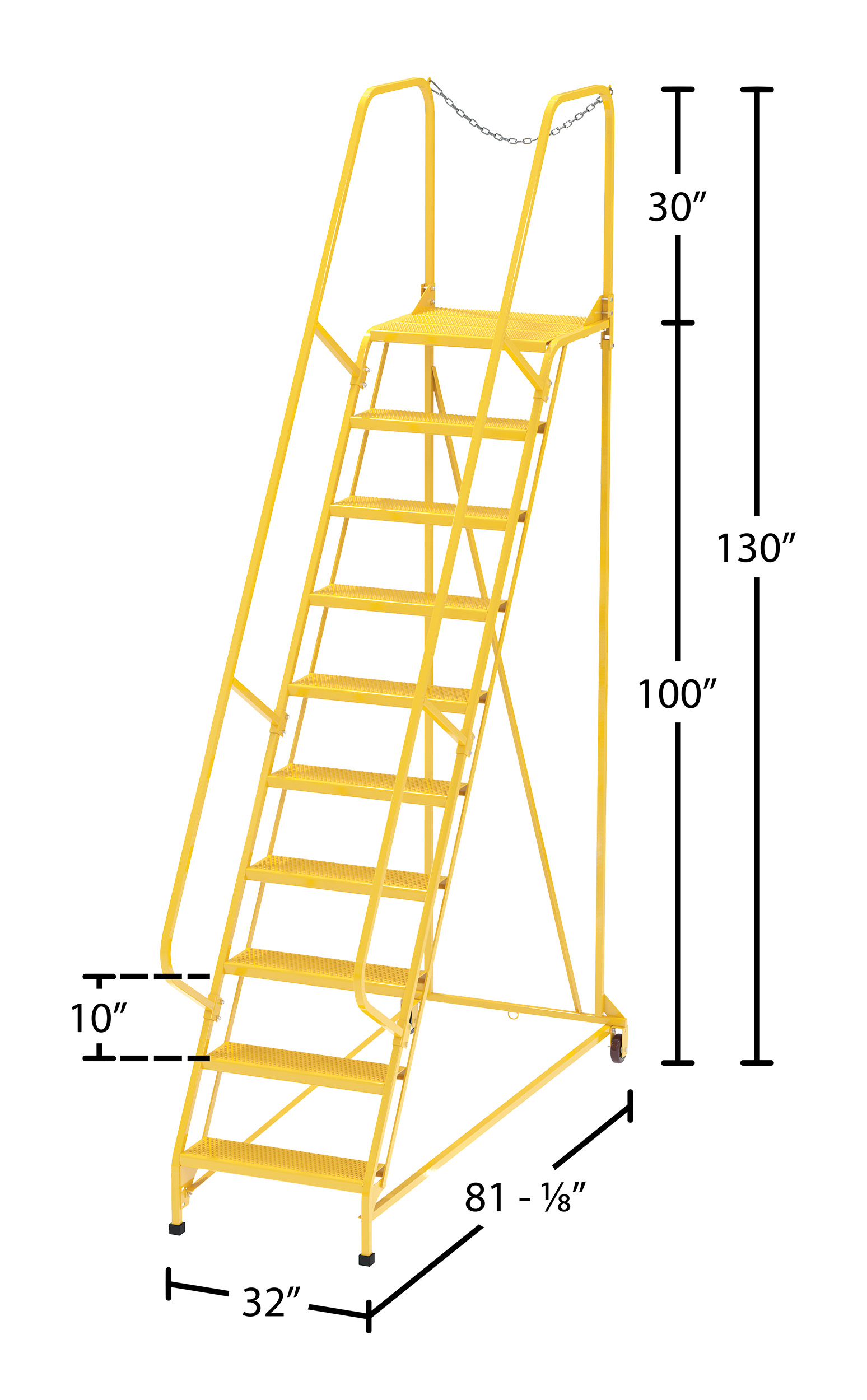 | Top Step Height (in.): 100 | Hand Rail Height (in.): 30 | Top Platform Length (in.): 21 |