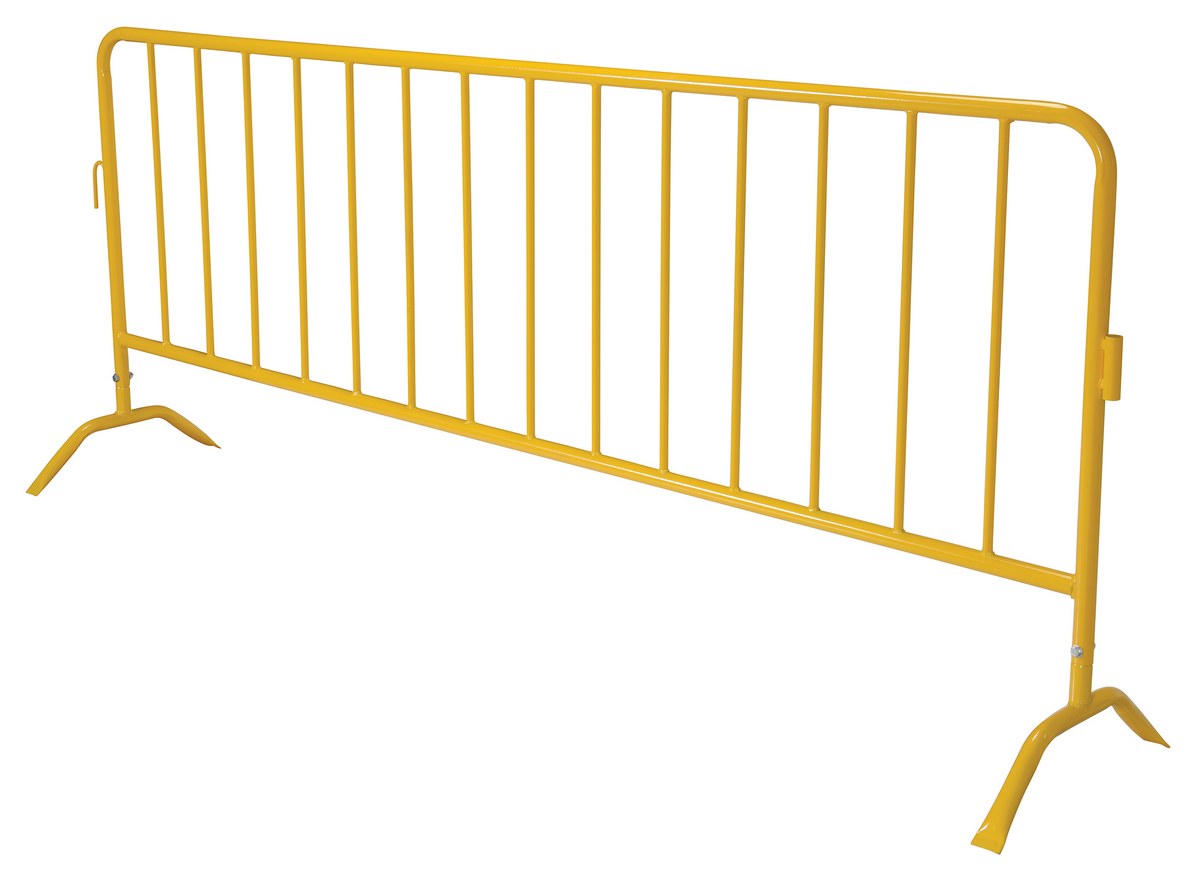 Steel Crowd Control Interlocking Barrier with Curved Feet 101-3/16 In. Length YellowThe light weight crowd control interlocking barrier is attractive and the functional design is ideal for directing personnel. Interlocking portable railing has many commercial and industrial applications. Easy to move to meet changing needs. Upright bars are vertically spaced. Each railing includes connectors to attach multiple units together to form long runs. Feet are removable so railing will lay flat for shipping and storage.