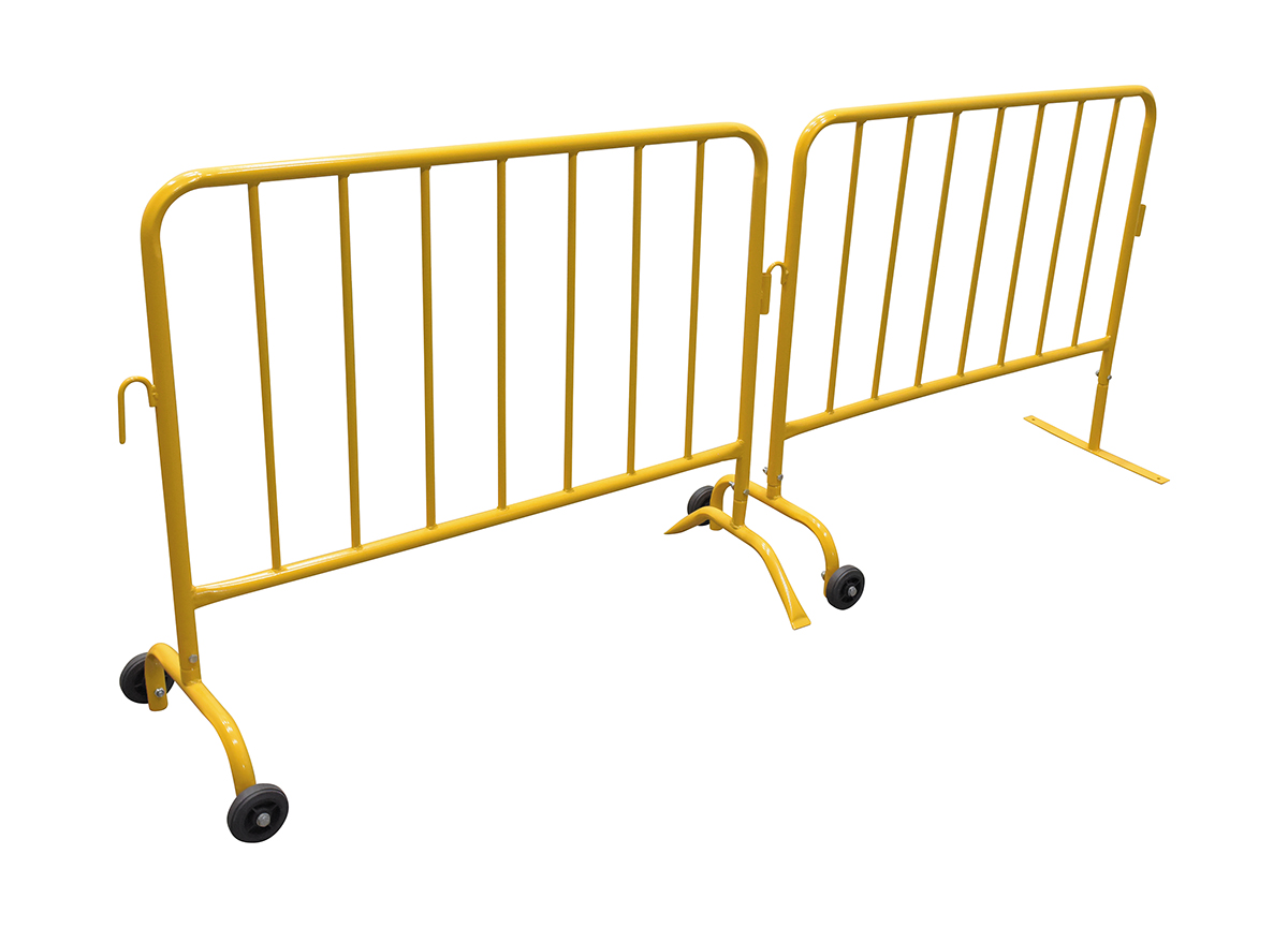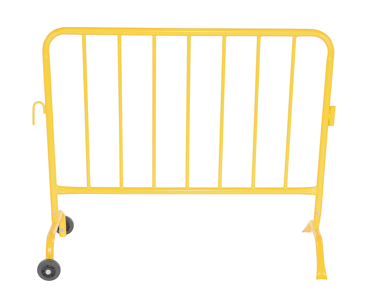 Steel Crowd Control Interlocking Barrier with Feet (1) Wheeled (1) Curved 47-1/2 In. Length YellowThe Heavy Duty crowd control interlocking barrier is attractive and the functional design is ideal for directing personnel. Interlocking portable railing has many commercial and industrial applications. Upright bars are vertically spaced. Each railing includes connectors to attach multiple units together to form long runs. Units are easy to move to meet changing needs. Barriers have flat and compact design to minimize storage space when not in use.