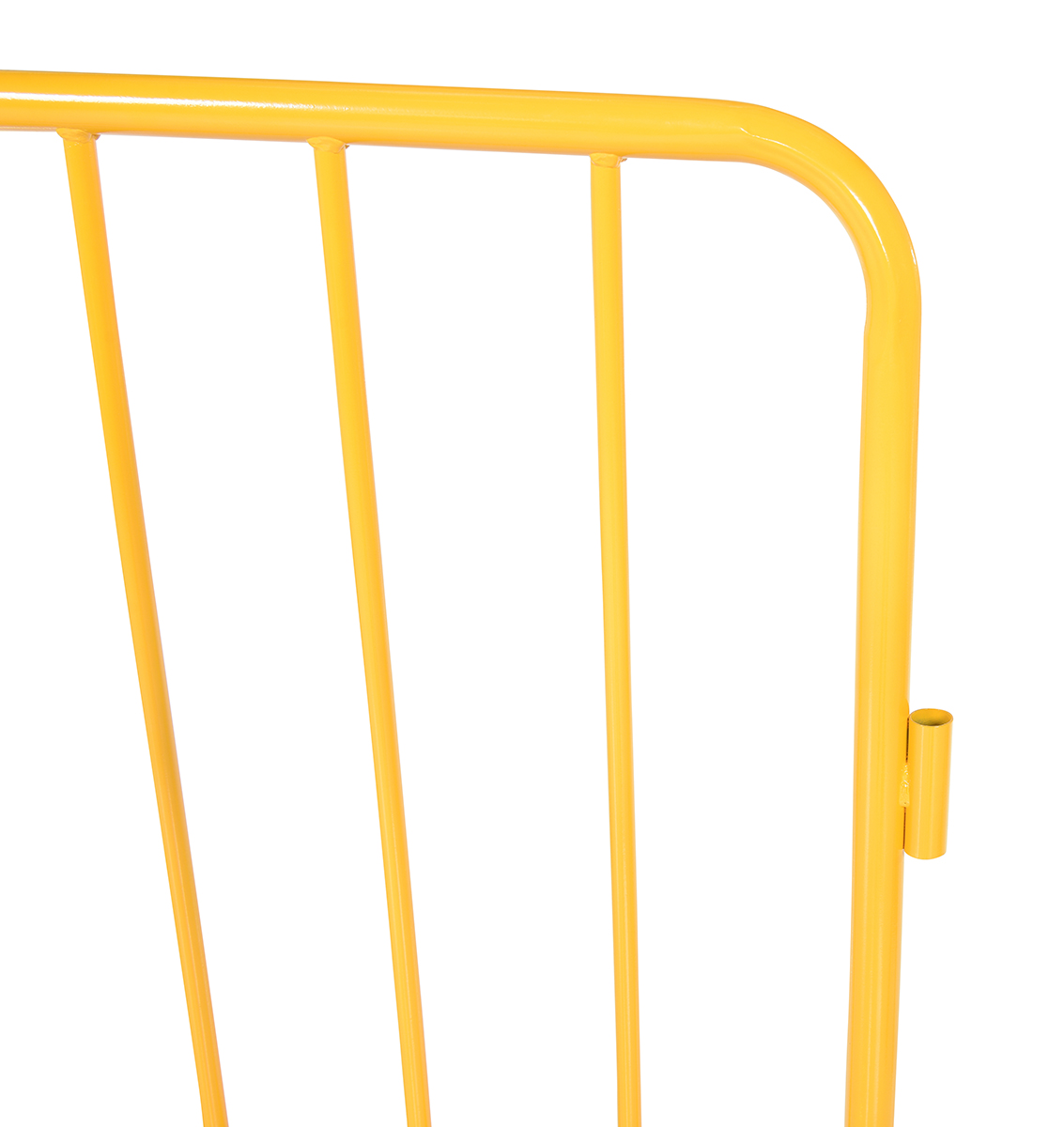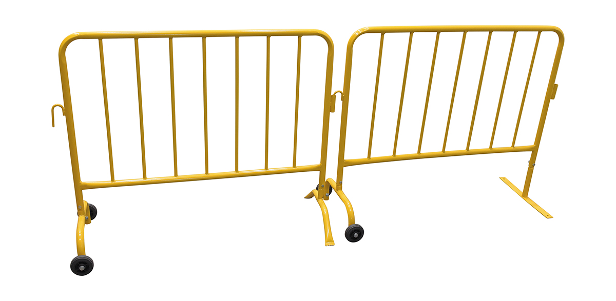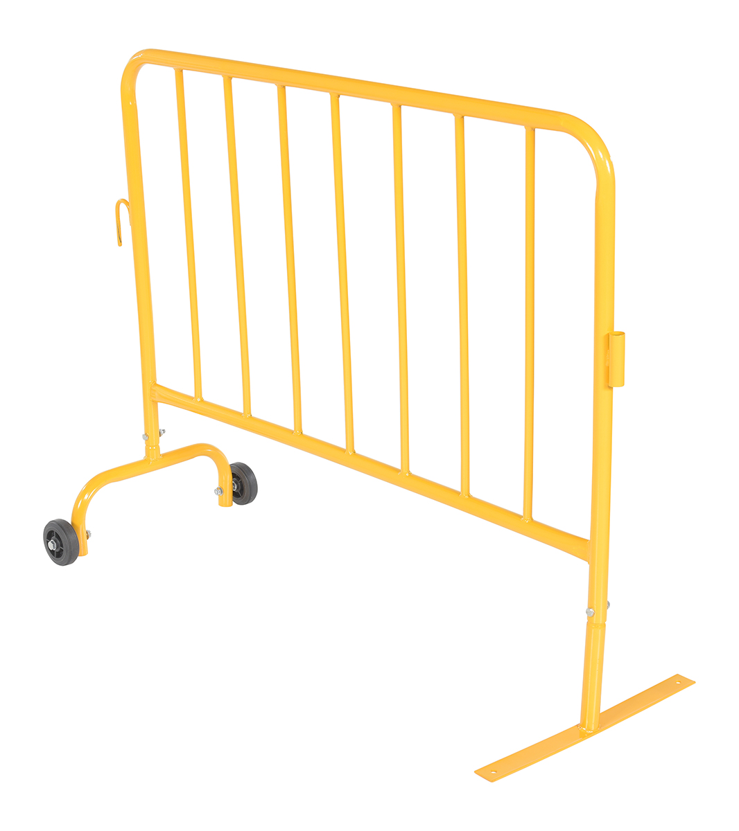 Steel Crowd Control Interlocking Barrier with Feet (1) Wheeled (1) Flat 47-1/2 In. Length YellowThe Heavy Duty crowd control interlocking barrier is attractive and the functional design is ideal for directing personnel. Interlocking portable railing has many commercial and industrial applications. Upright bars are vertically spaced. Each railing includes connectors to attach multiple units together to form long runs. Units are easy to move to meet changing needs. Barriers have flat and compact design to minimize storage space when not in use.